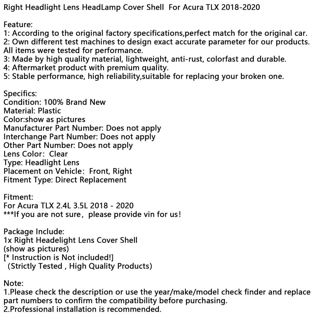 Right Headlight Lens HeadLamp Cover Shell  For Acura TLX 2018-2020