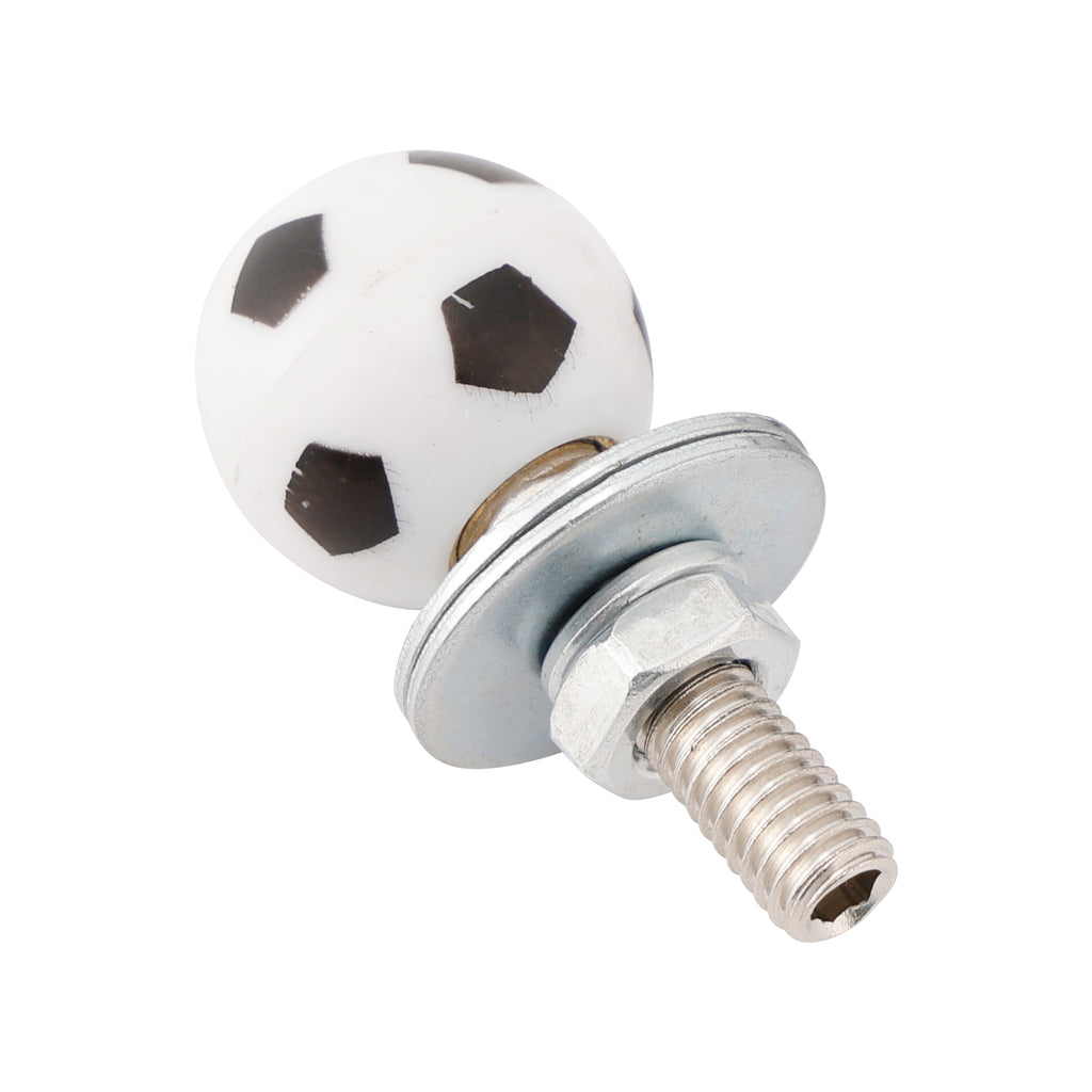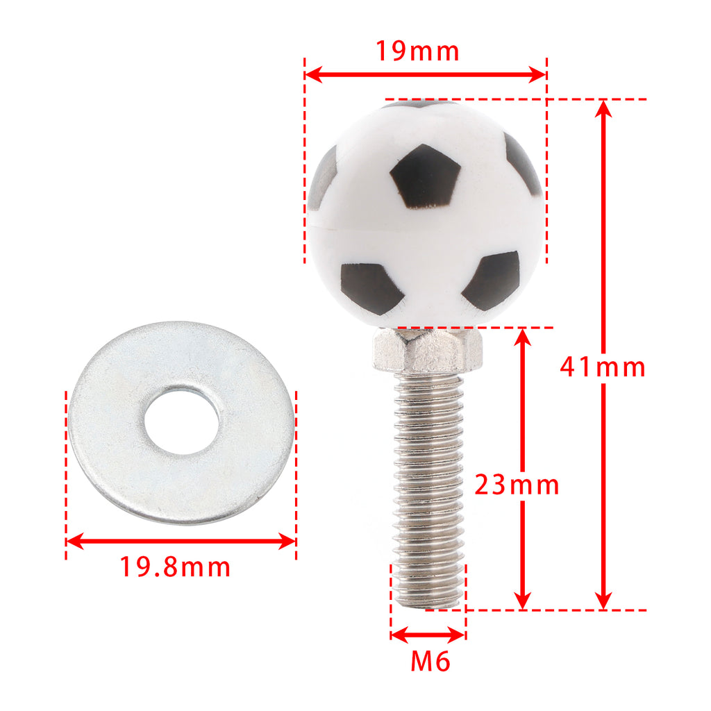 Bolts with soccer design for mounting on license plates.