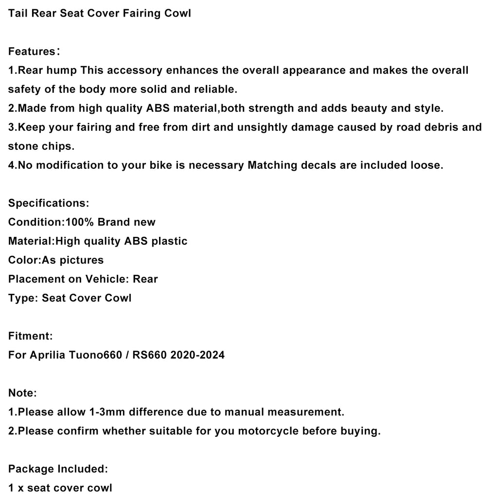 Rear Seat Cover Fairing Cowl For Aprilia RS660 Tuono 660 2020-2024 White