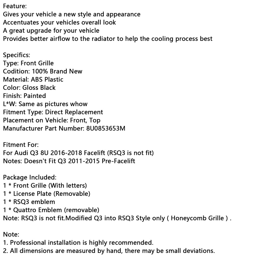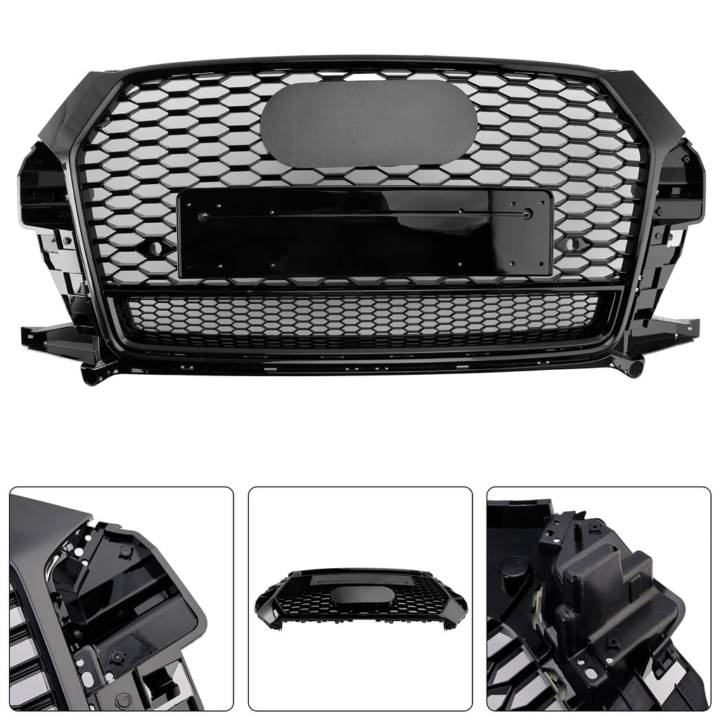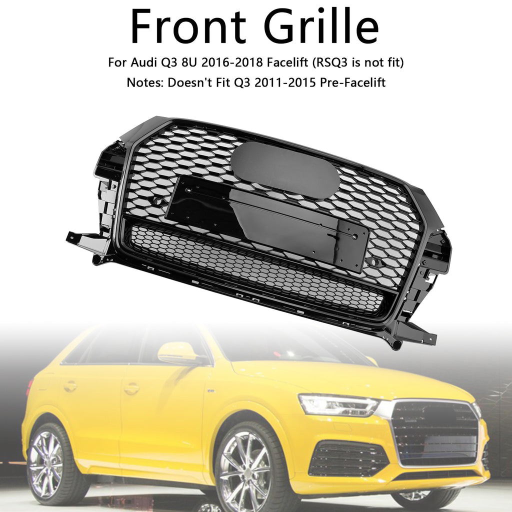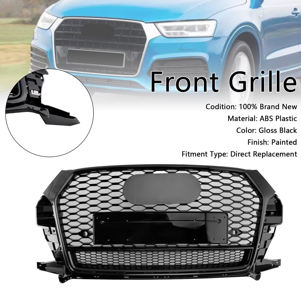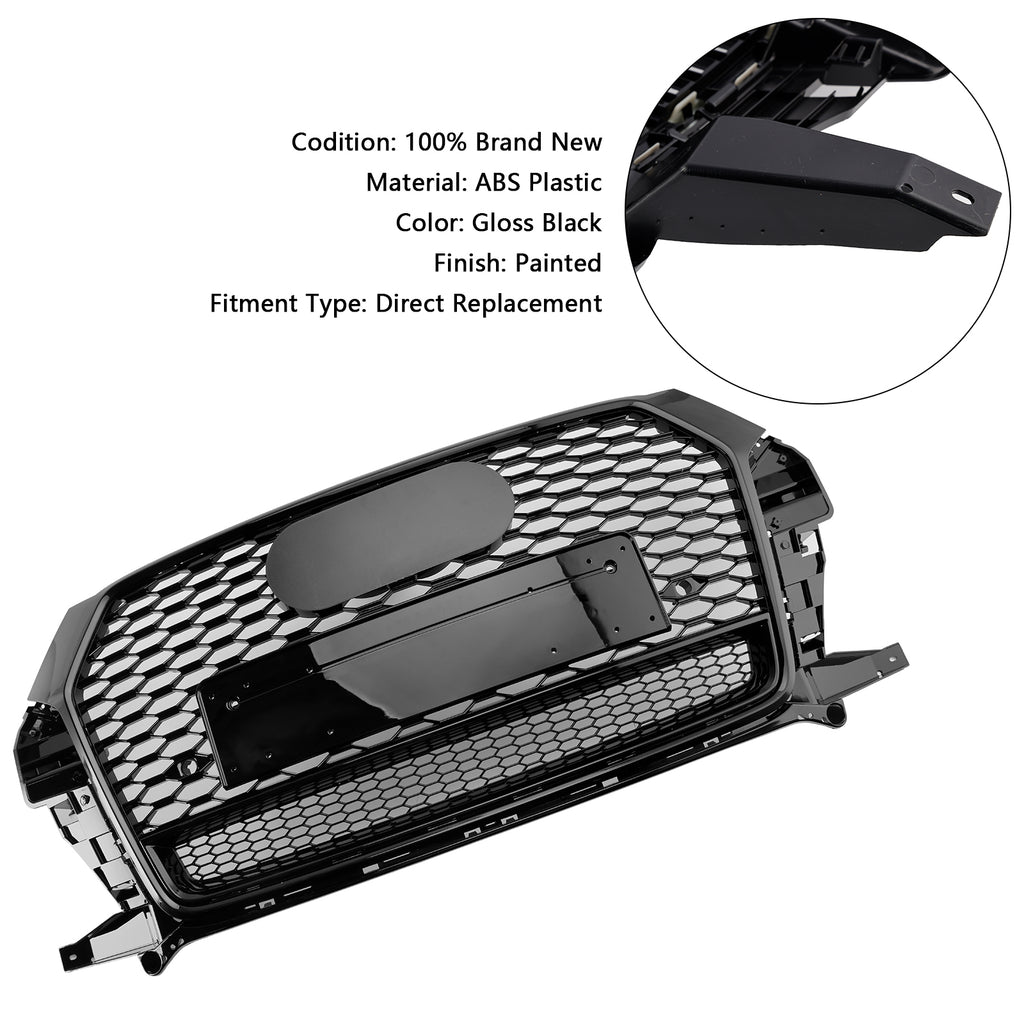 RSQ3 Style Front Honeycomb Grill Grille Fit Audi Q3 2016-2018 Gloss Black