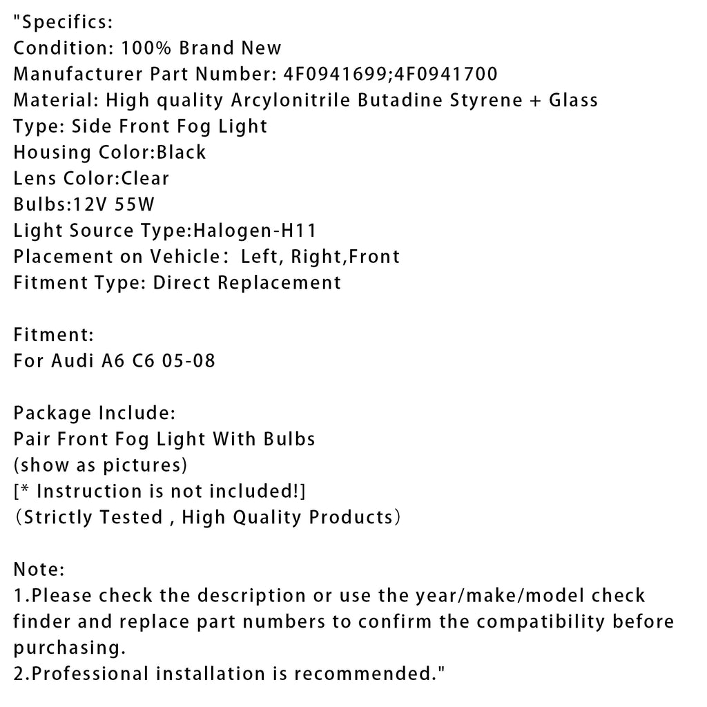 Pair Front Bumper Driving Fog Light For Audi A6 C6 2005 2006 2007 2008