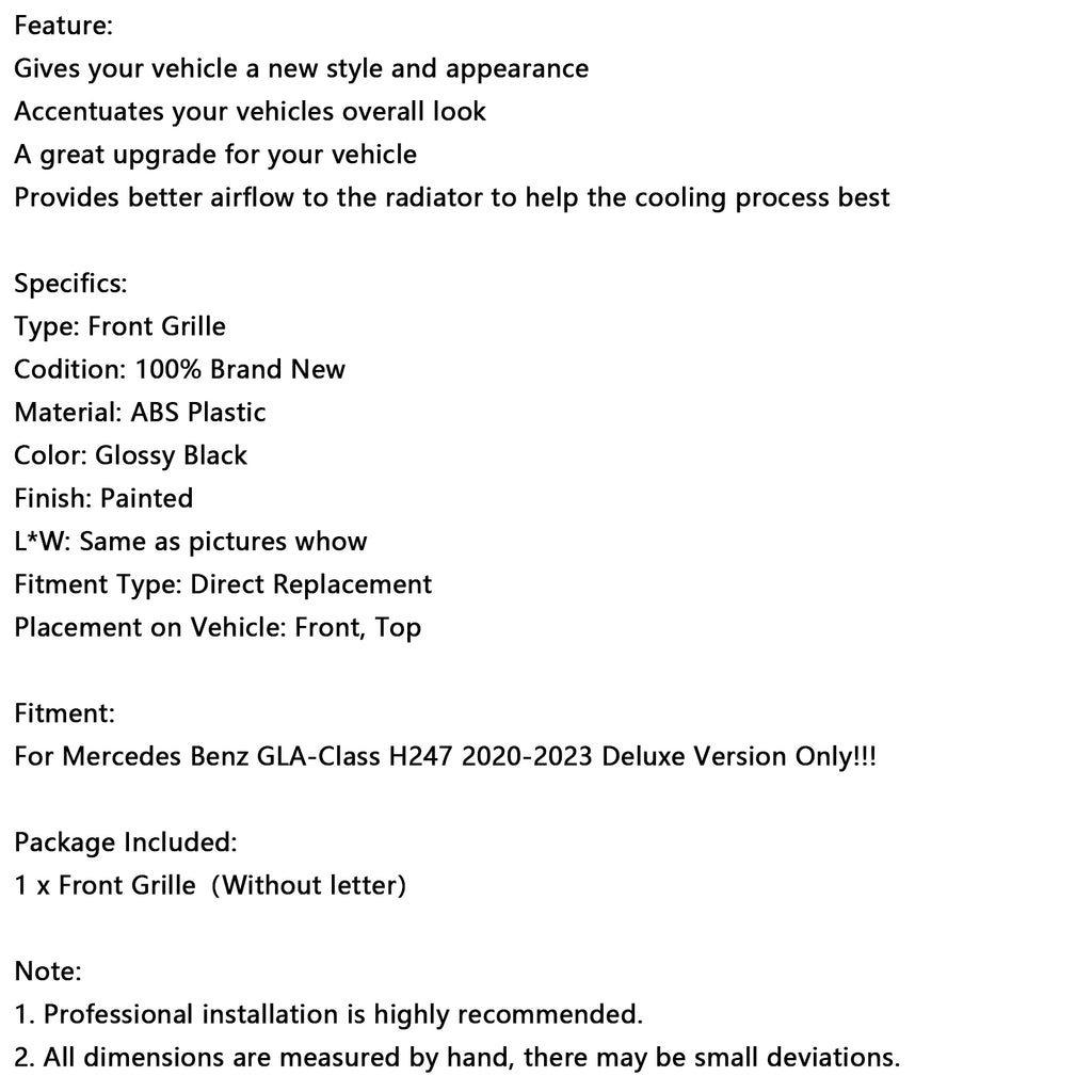 Front Bumper Grille Grill Fit Mercedes Benz GLA-Class H247 Deluxe 2020-2023