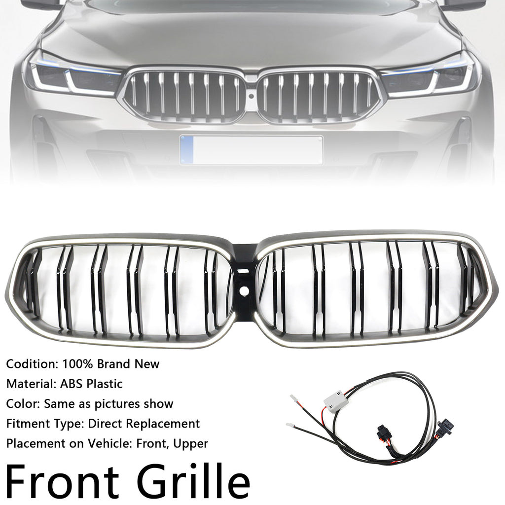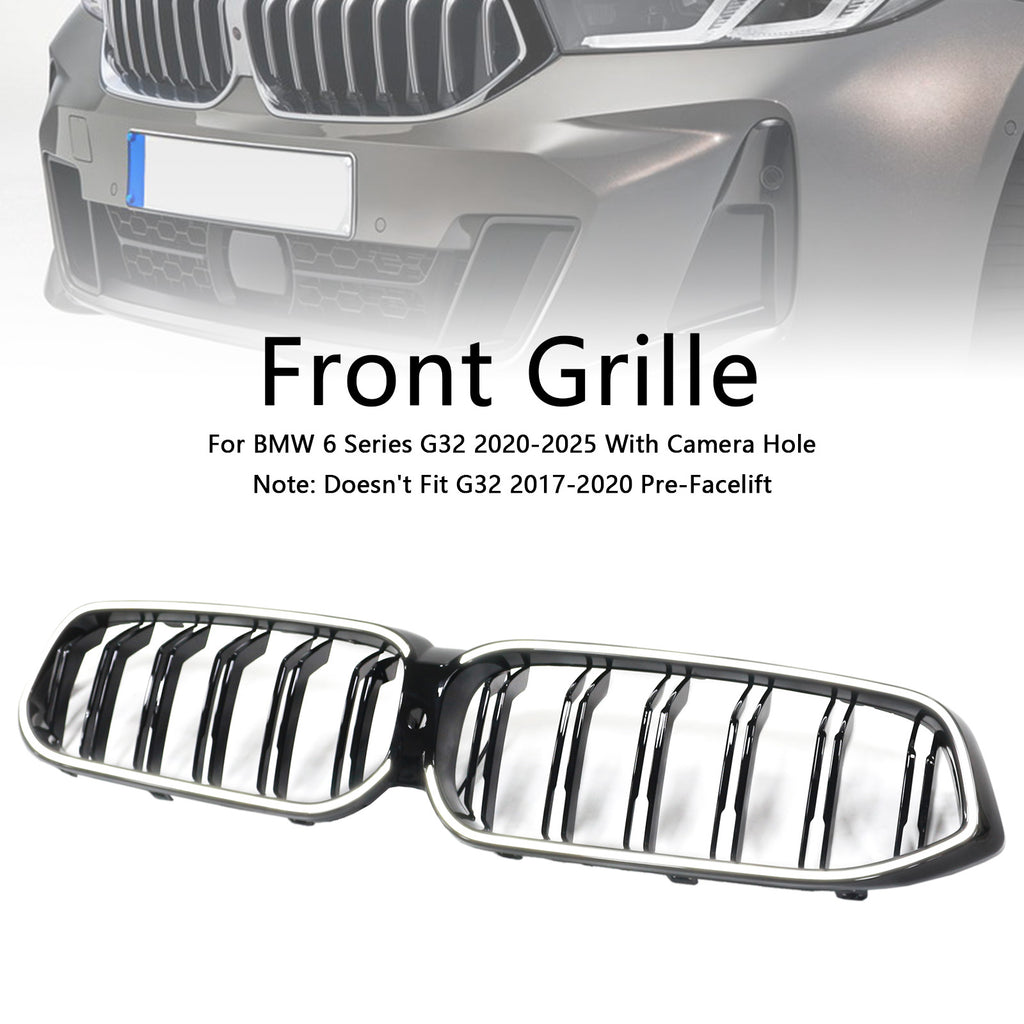 Double Slat Black Front Kidney Grill Grille Fit BMW 6 Series G32 2020-2025
