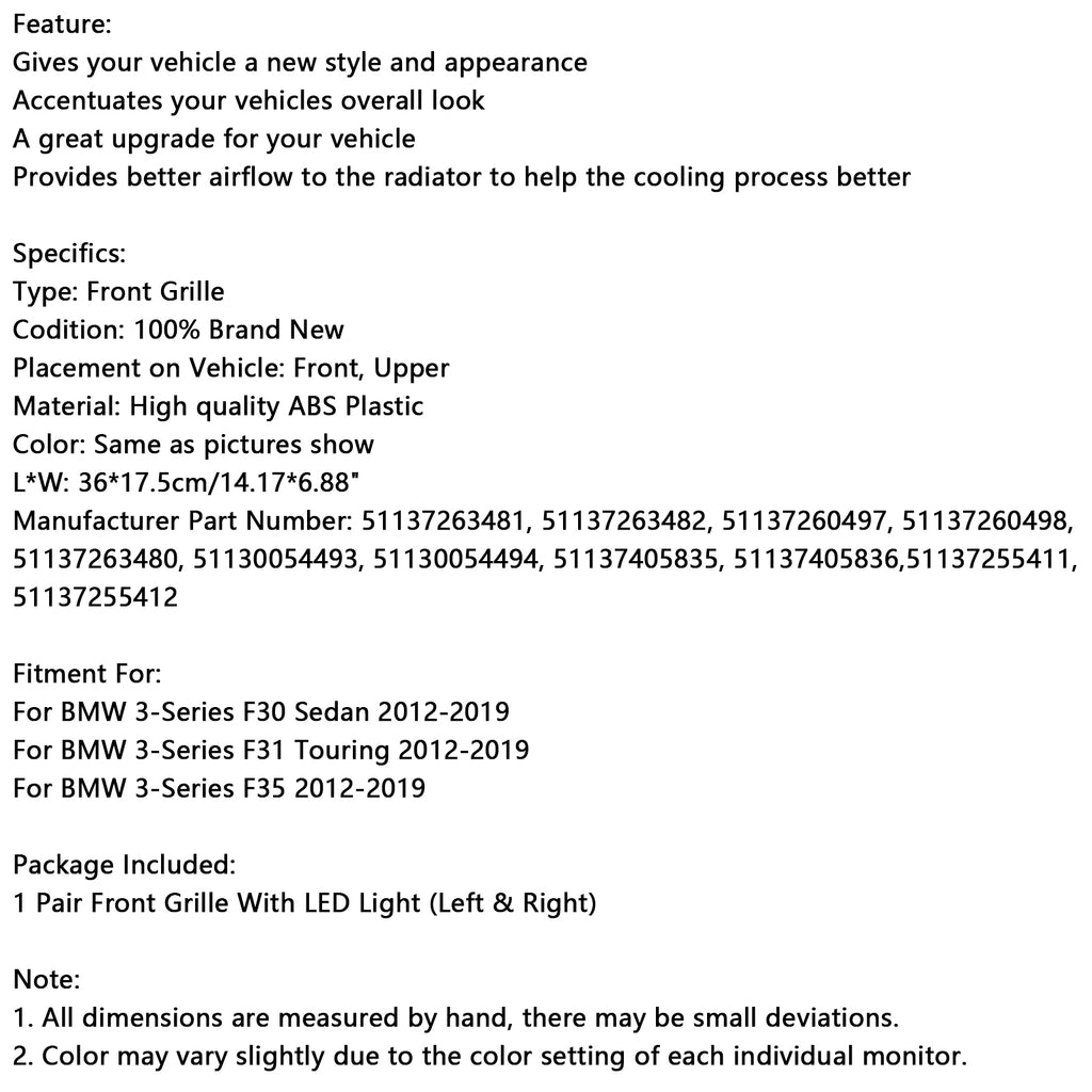 Double Slat Front Kidney Grille Grill Fit BMW 3 Series F30 F31 F35 2012-2019