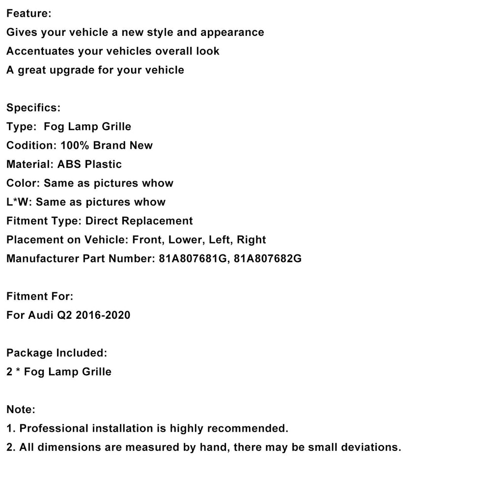 2PCS Front Bumper Grille Fog Lamp Grille 81A807681G Fit for Audi Q2 2016-2020