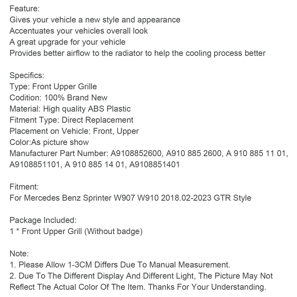 For Mercedes Benz Sprinter W907 W910 2018.02-2023 GTR Style
