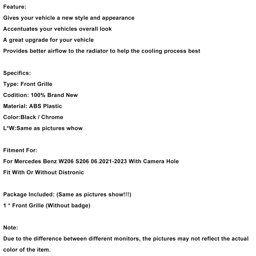 For Mercedes Benz W206 S206 06.2021-2023 With Camera Hole