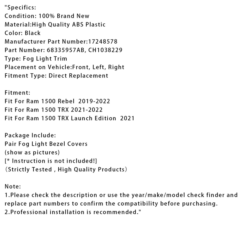 Pair Fog Light Trim Driving Lamp Frame For Ram 1500 Rebel 2019-2022 68335957AB