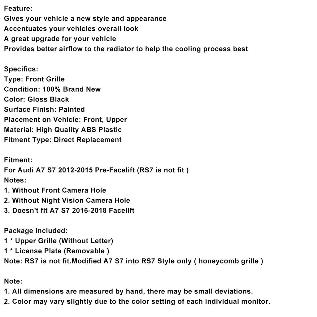 Note: RS7 is not fit.Modified A7 S7 into RS7 Style only ( honeycomb grille )