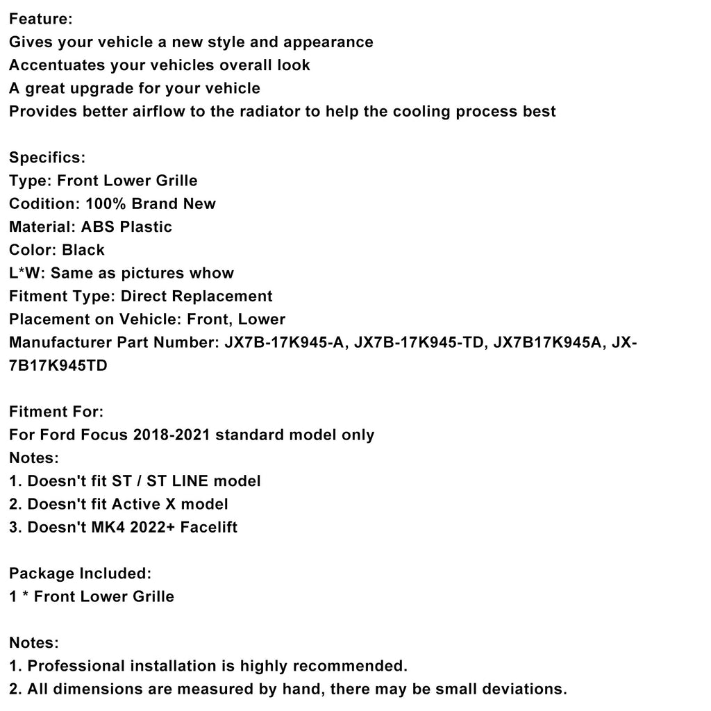 St Style Front Bumper Lower Grill Grille Fit Ford Focus MK4 2018-2021 Black
