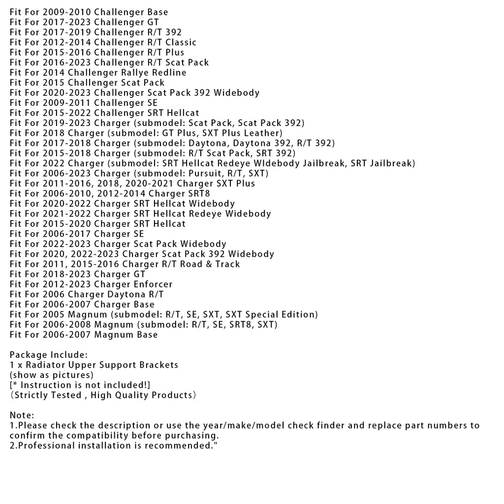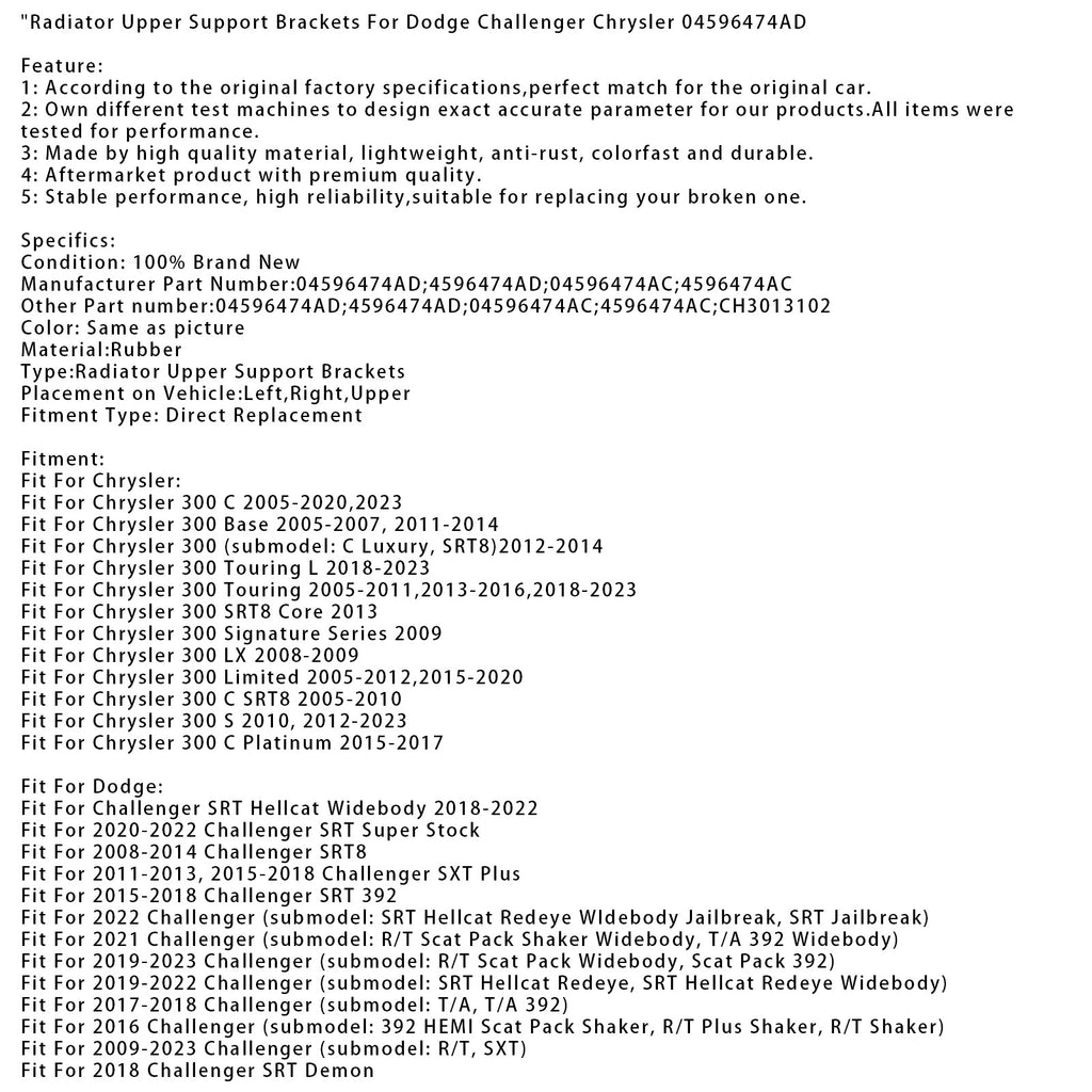 Radiator Upper Support Brackets For Dodge Challenger Chrysler 04596474AD