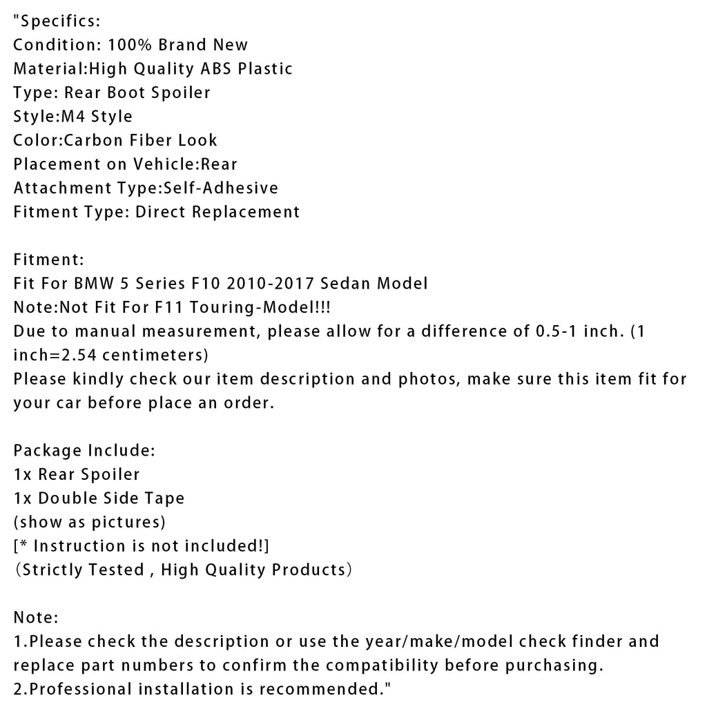 Carbon Fiber Look Rear Boot Spoiler For BMW 5 Series F10 2010-2016 M4 Style