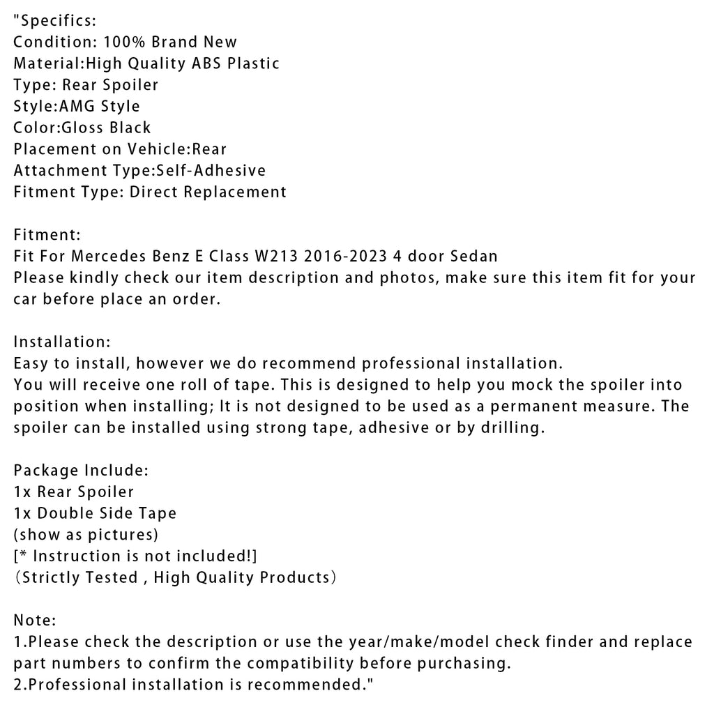 Gloss Black Rear Spoiler For Mercedes-Benz E-Class W213 16-23 AMG Style