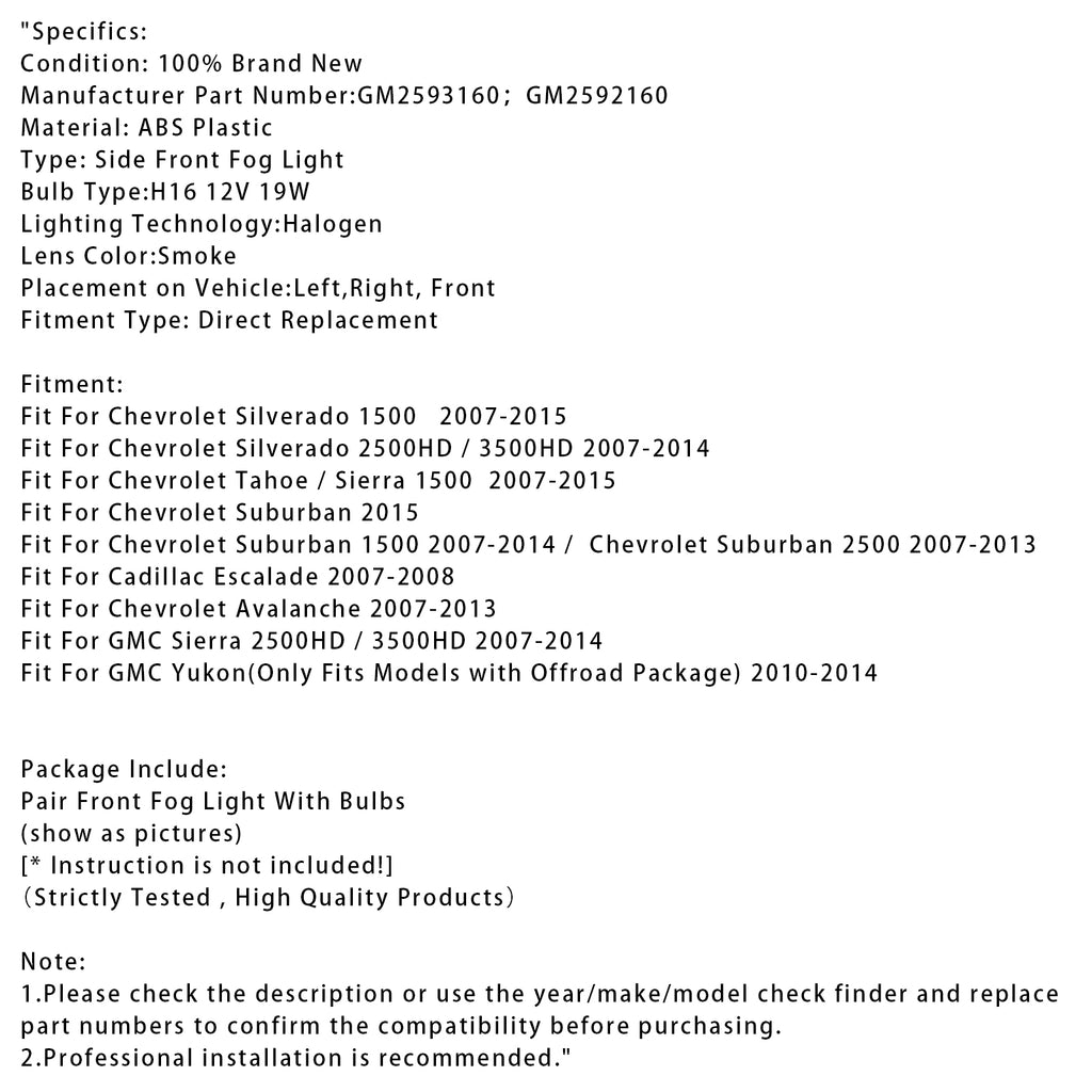 Pair Front Fog Light Lamps With Bulbs For Chevy Silverado 2007-2013 Smoked Lens