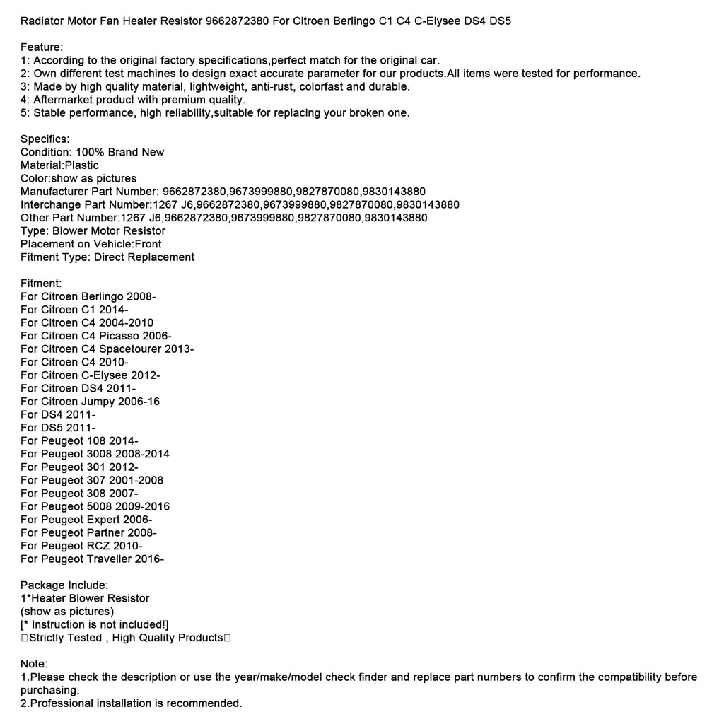 Radiator Motor Fan Heater Resistor 9662872380 For Citroen Berlingo C1 C4 C-Elysee DS4 DS5
