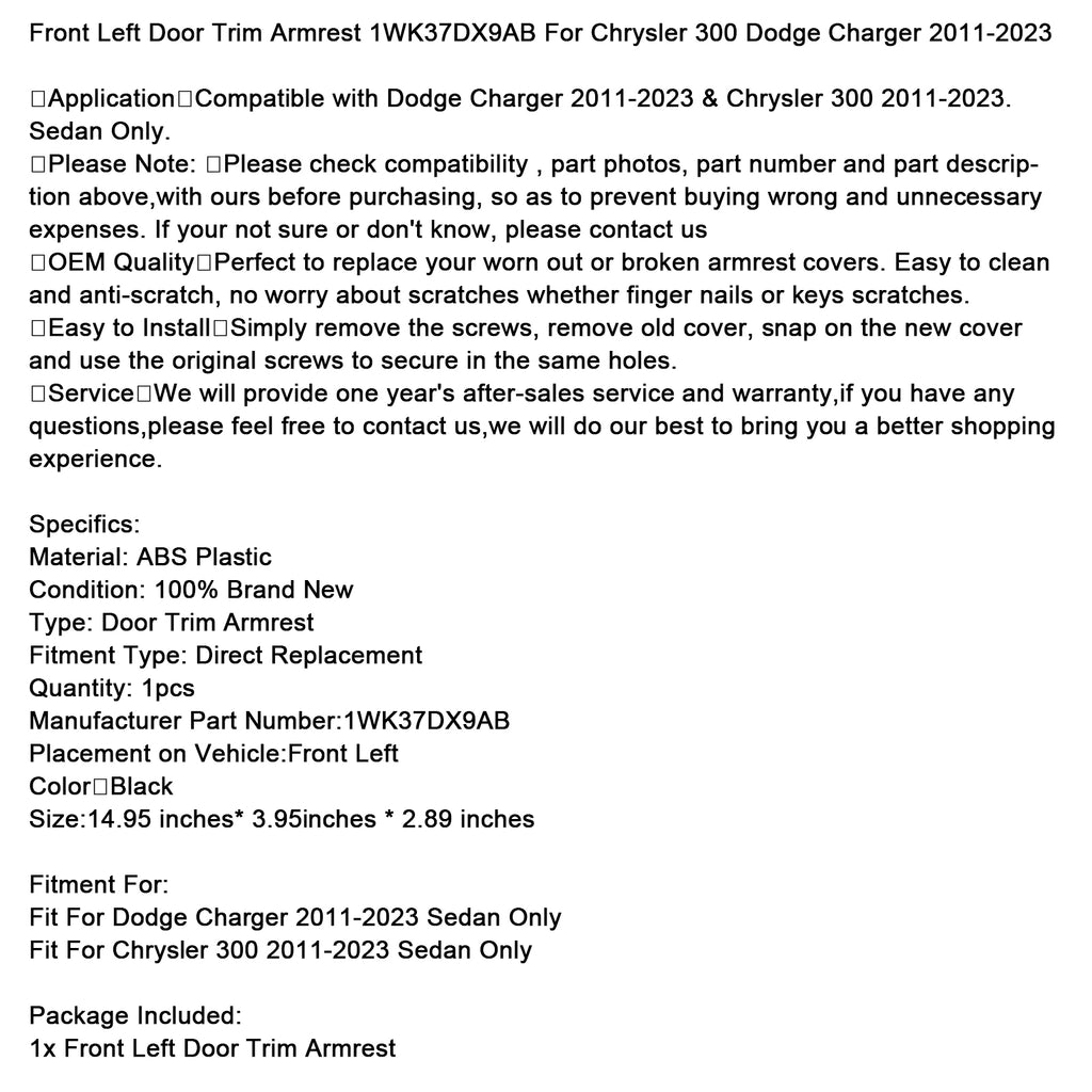 Front Left Door Trim Armrest 1WK37DX9AB For Chrysler 300 Dodge Charger 2011-2023