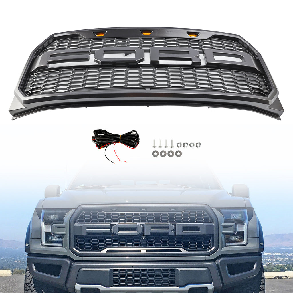 Replacement ABS Front Bumper Grille Grill W/ LED Fit Ford F150 2015-2017 Raptor