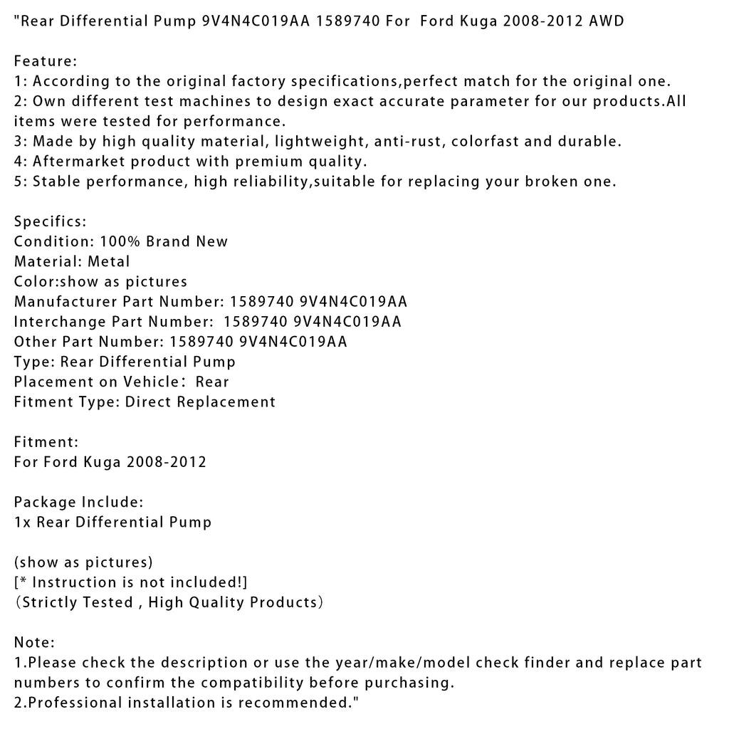 Rear Differential Pump 9V4N4C019AA 1589740 For Ford Kuga 2008-2012 AWD