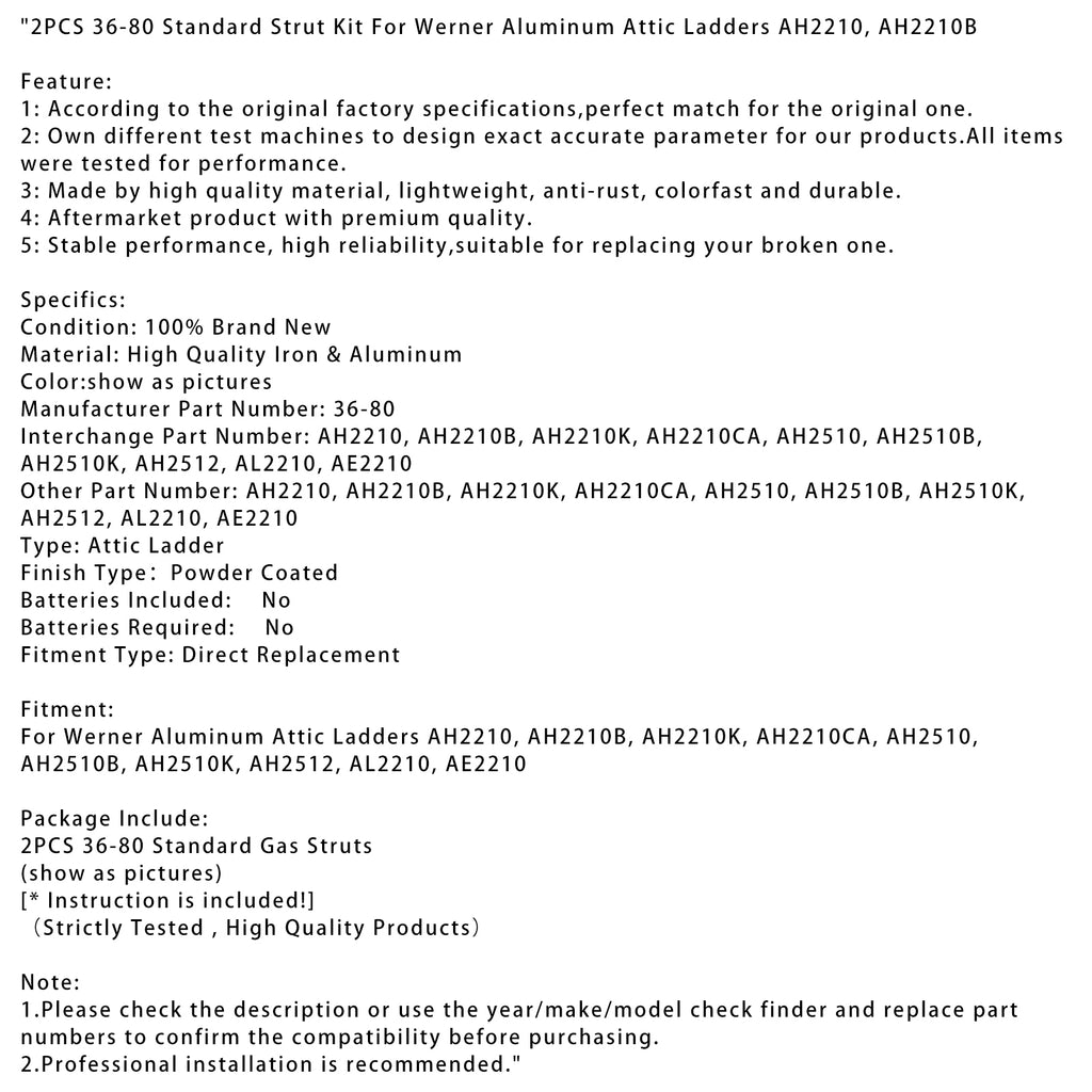2PCS 36-80 Standard Strut Kit For Werner Aluminum Attic Ladders AH2210, AH2210B 2010+
