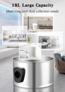 The wet and dry vacuum cleaner is a flexible and powerful all-purpose vacuum cleaner for easy wet or dry cleaning that should not be missing in any household. The easy-to-clean 18 liter stainless steel container absorbs coarse, fine, wet or dry dirt and liquids without leaving any residue. Thanks to the powerful 1800 watt motor, not only is good suction power achieved, but the practical blowing function also means there is always enough pressure available for additional blowing out of hard-to-reach areas. The robust dirt collection bag reliably keeps even fine dust in the system and makes vacuuming a clean affair. When wet vacuuming, an additional foam filter protects the motor from contamination. is equipped with a hose system with a small connection, consisting of a suction hose, 2 extension tubes and an adapter piece. The included large suction nozzle with combination insert can be used equally for carpets and smooth floors, and the crevice nozzle can also be used to thoroughly clean narrow corners and angles. With the practical accessory holder, all parts can be stored quickly and neatly directly on the device; the wound electrical cable can be securely fixed to the cable holder after work. The sturdy carrying handle and four smooth-running swivel castors ensure the greatest possible mobility.