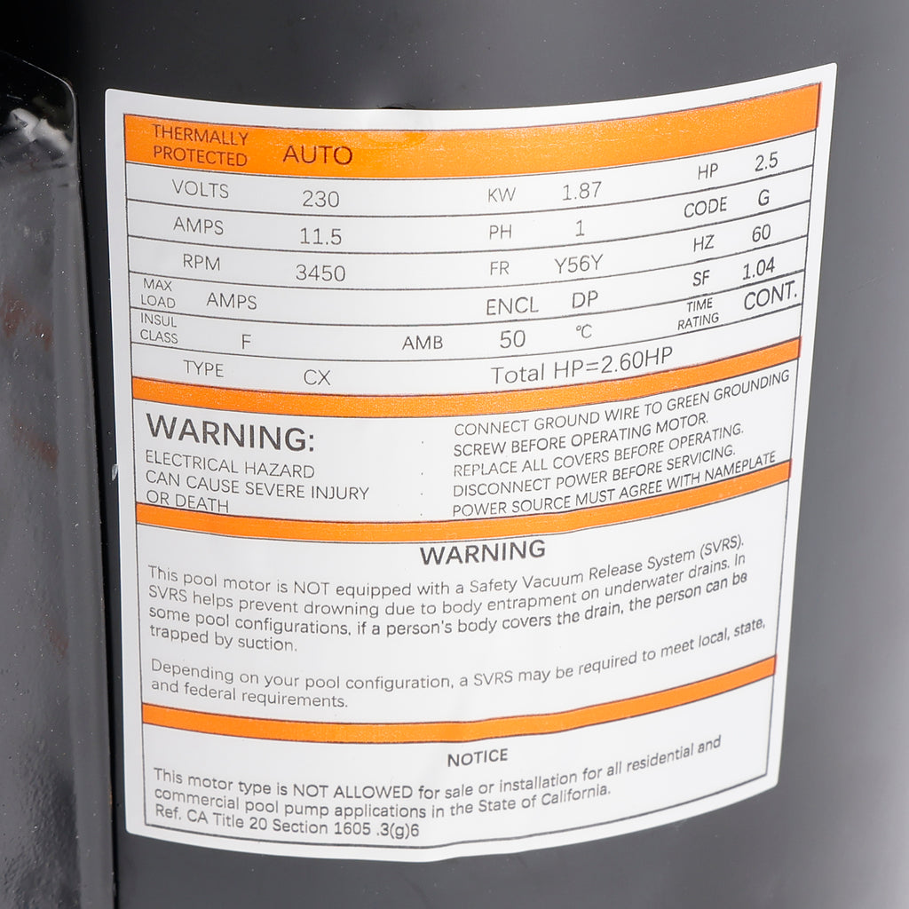 For B2840 B840 2.5HP 230V Pool Pump Motor 56Y Frame Square Flange