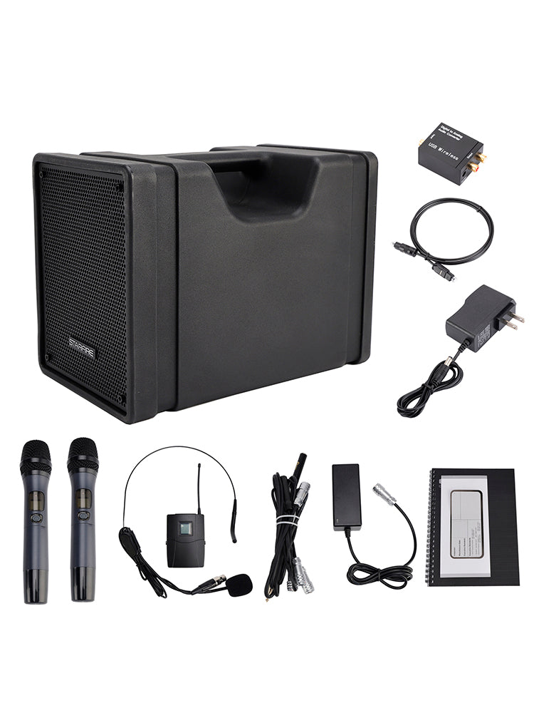 1. This product is a multifunctional, active, portable, high-sound-pressure speaker system with multiple functions, including wireless microphone grouping.