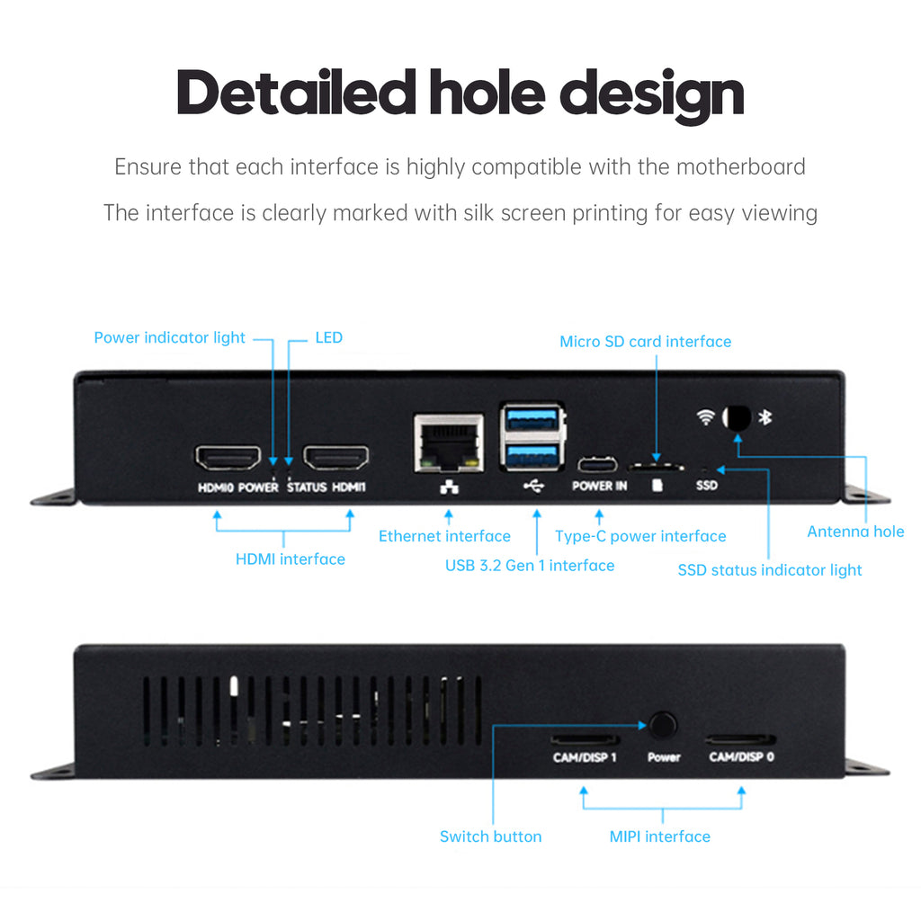 External expansion 40PIN GPIO interface, with a standard 40PIN GPIO adapter board, the 40PIN GPIO interface of the CM5 baseboard is expanded to the outside of the shell, which is convenient for access to various expansion boards