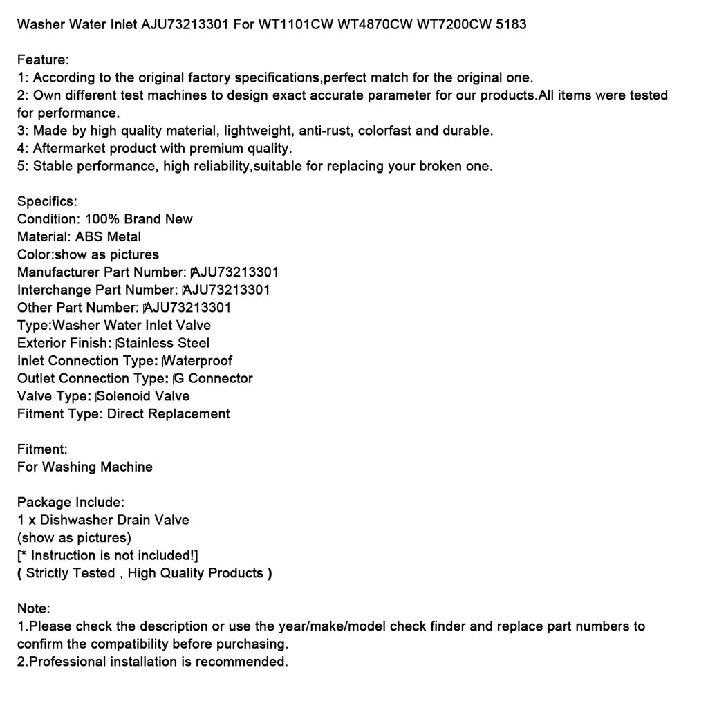 Washer Water Inlet AJU73213301 For WT1101CW WT4870CW WT7200CW 5183