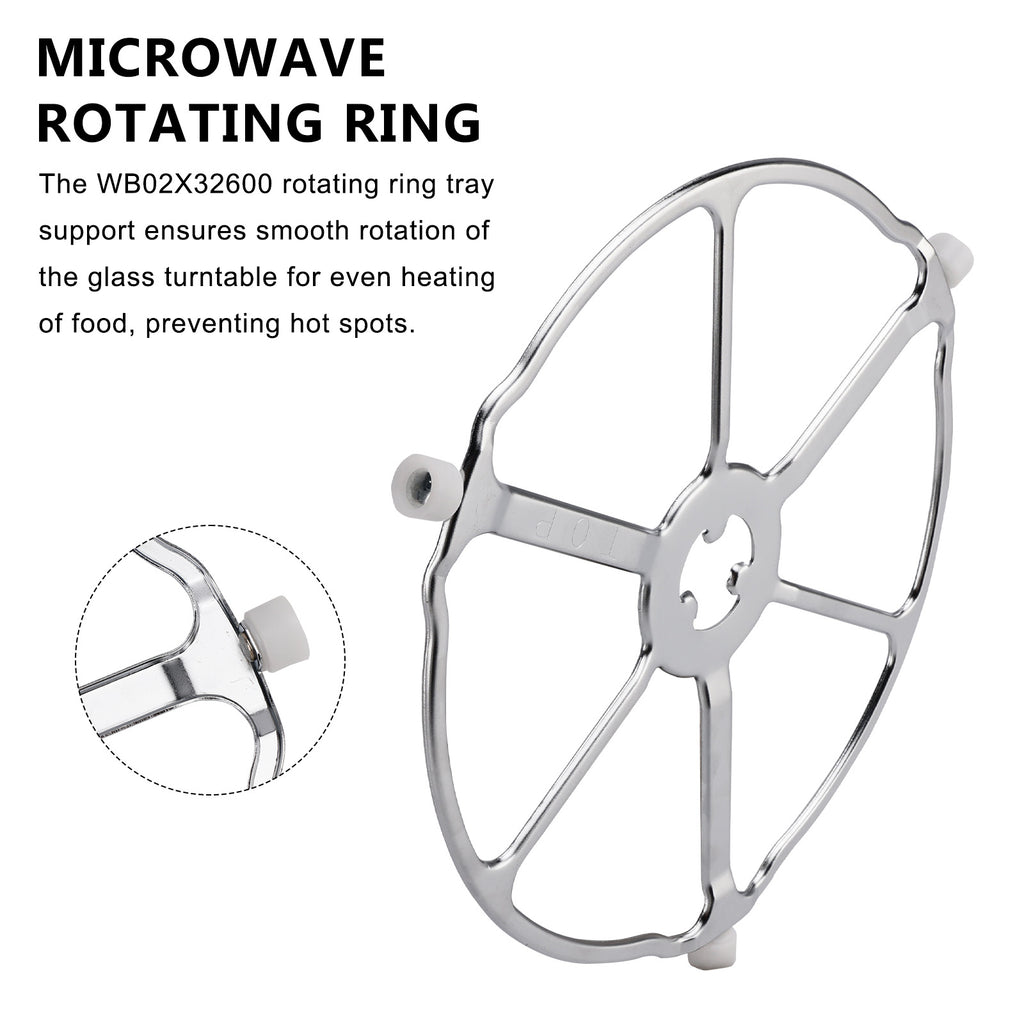 Excellent Performance: The WB02X32600 rotating ring tray support ensures smooth rotation of the glass turntable for even heating of food, preventing hot spots.