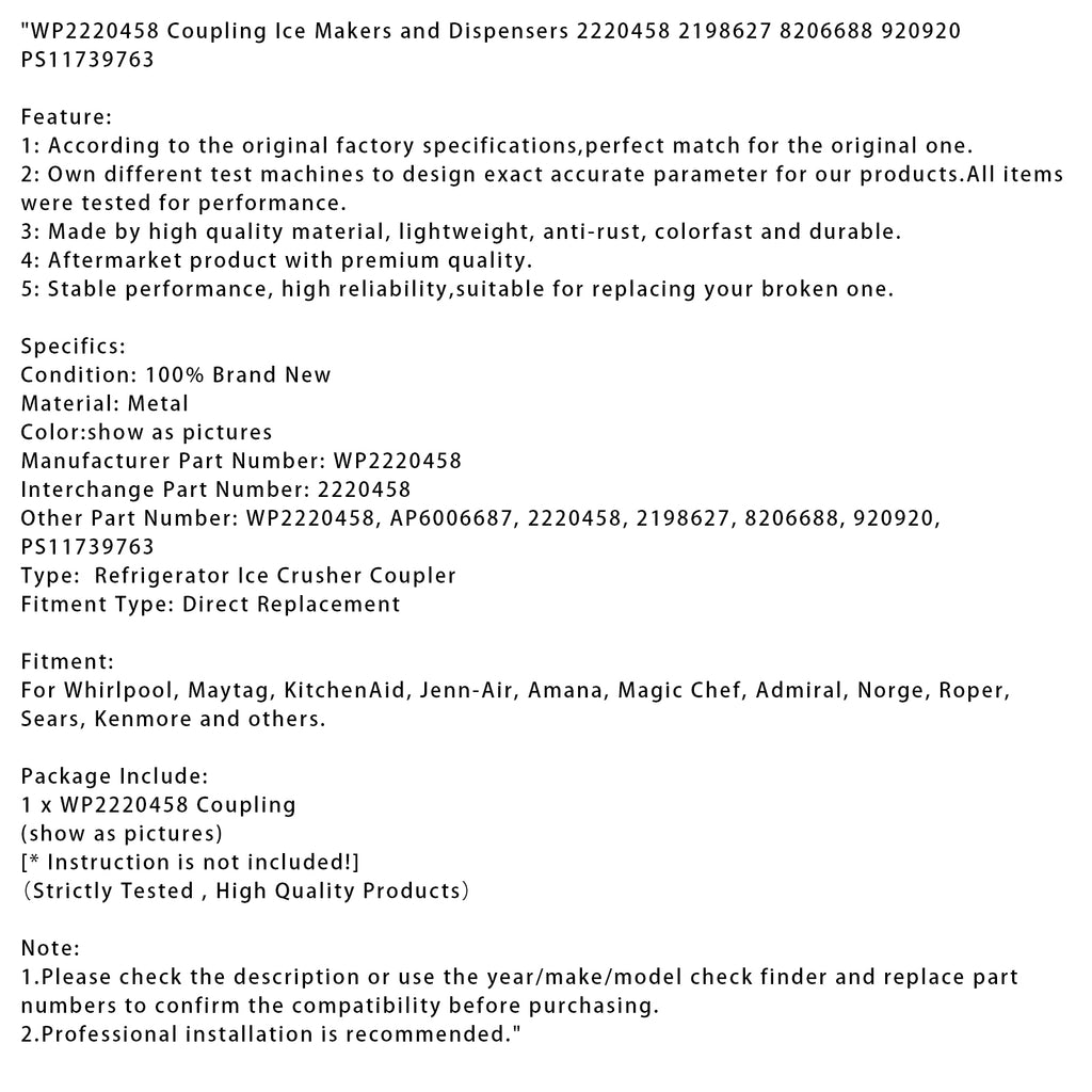 WP2220458 Coupling Ice Makers and Dispensers 2220458 2198627 8206688 920920 PS11739763