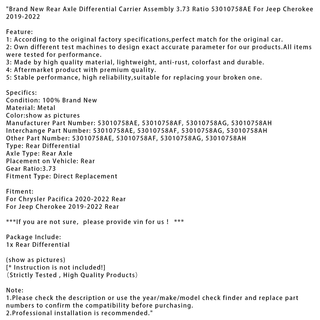 Brand New Rear Axle Differential Carrier Assembly 3.73 Ratio 53010758AE For Jeep Cherokee 2019-2022