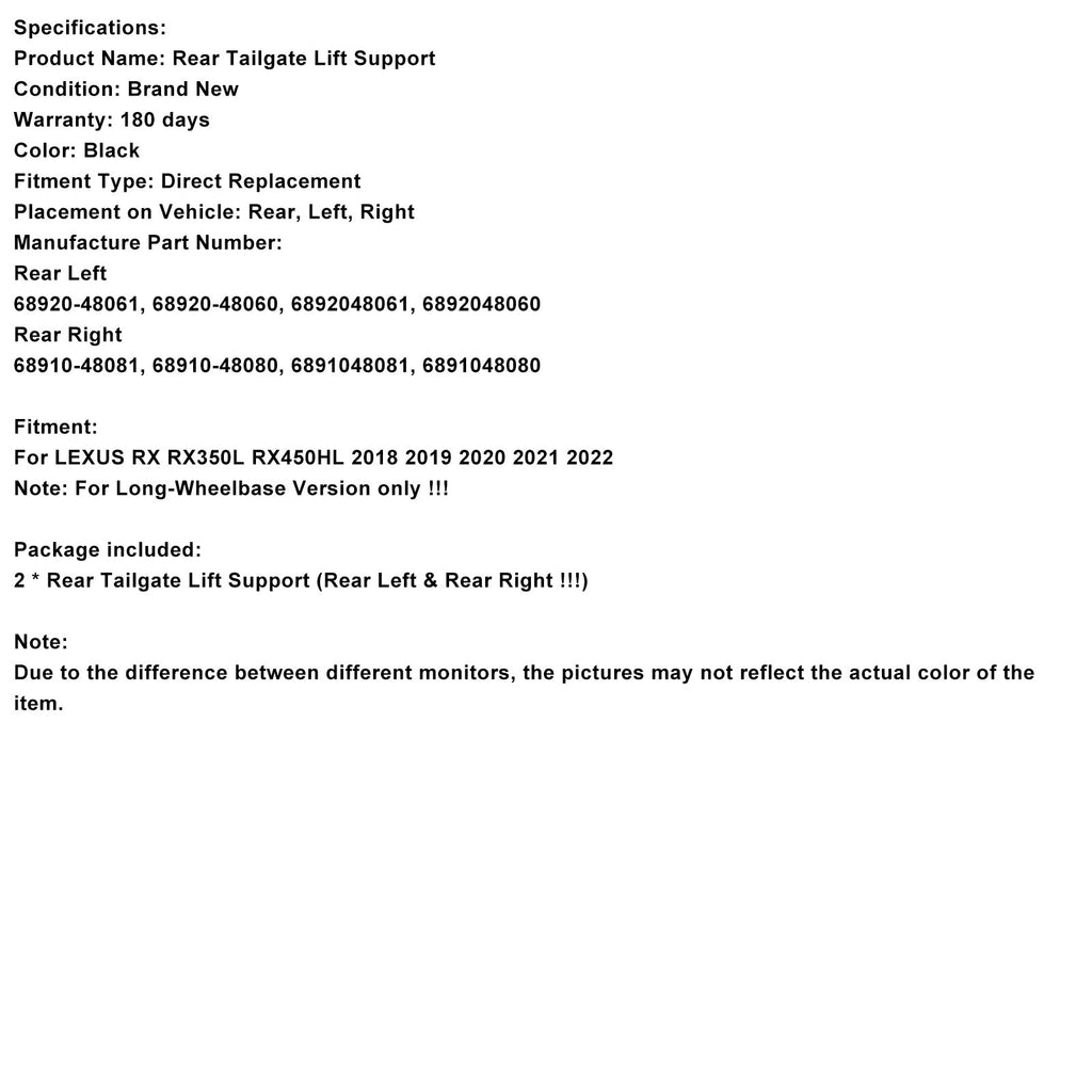 2PCS Rear Power Hatch Lift Support 6892048061 Fit for Lexus RX350L RX450hL 2018-2022
