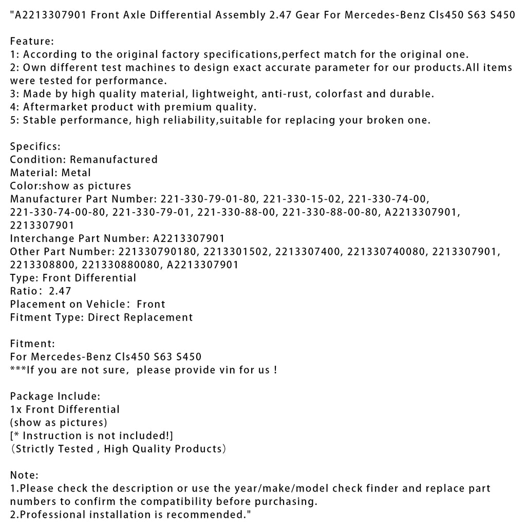 A2213307901 Front Axle Differential Assembly 2.47 Gear For Mercedes-Benz Cls450 S63 S450