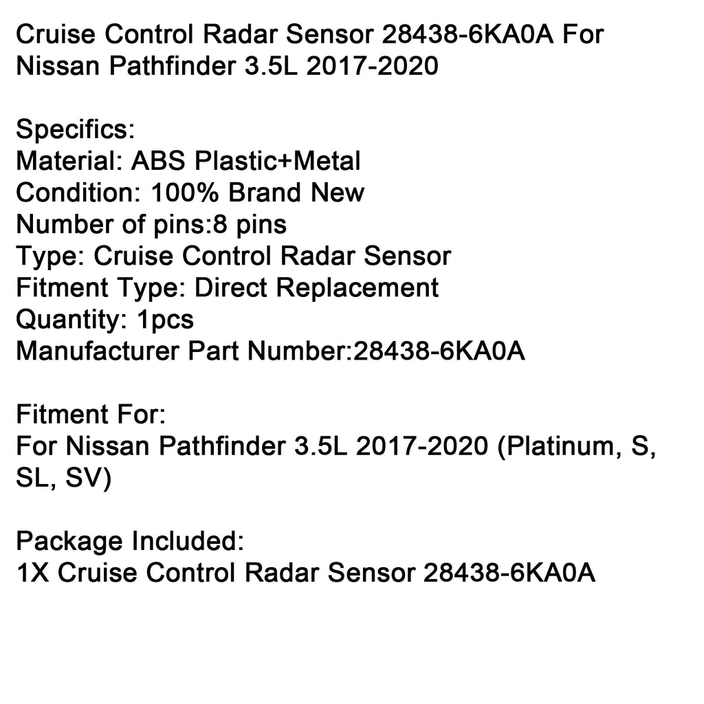 Cruise Control Radar Sensor 28438-6KA0A For Nissan Pathfinder 3.5L 2017-2020