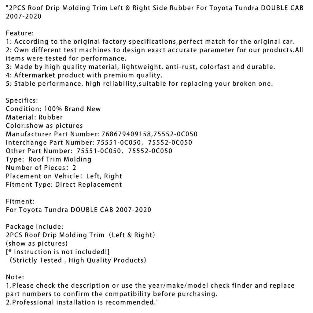 2PCS Roof Drip Molding Trim Left & Right Side Rubber For Toyota Tundra DOUBLE CAB 2007-2020