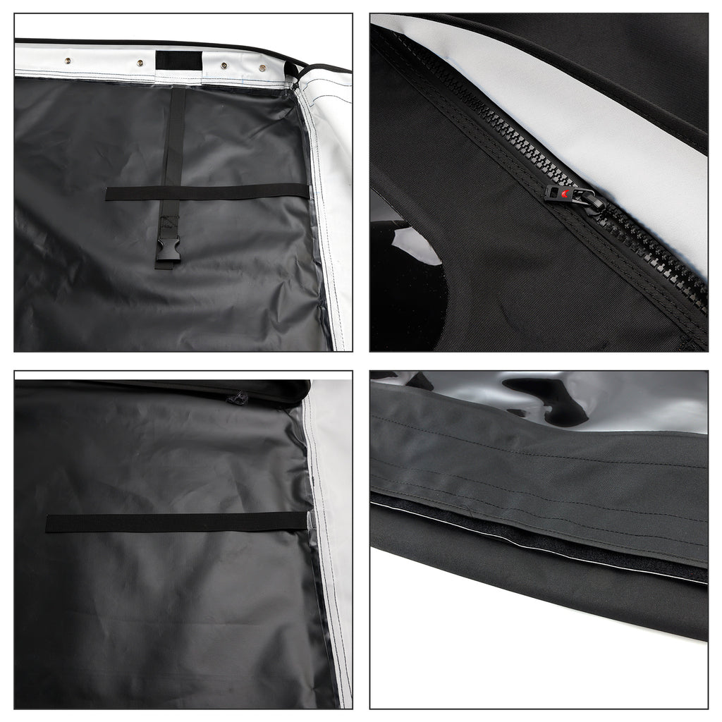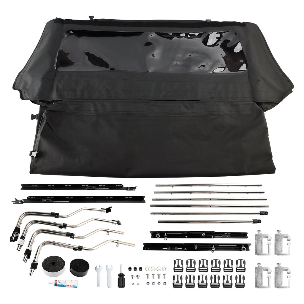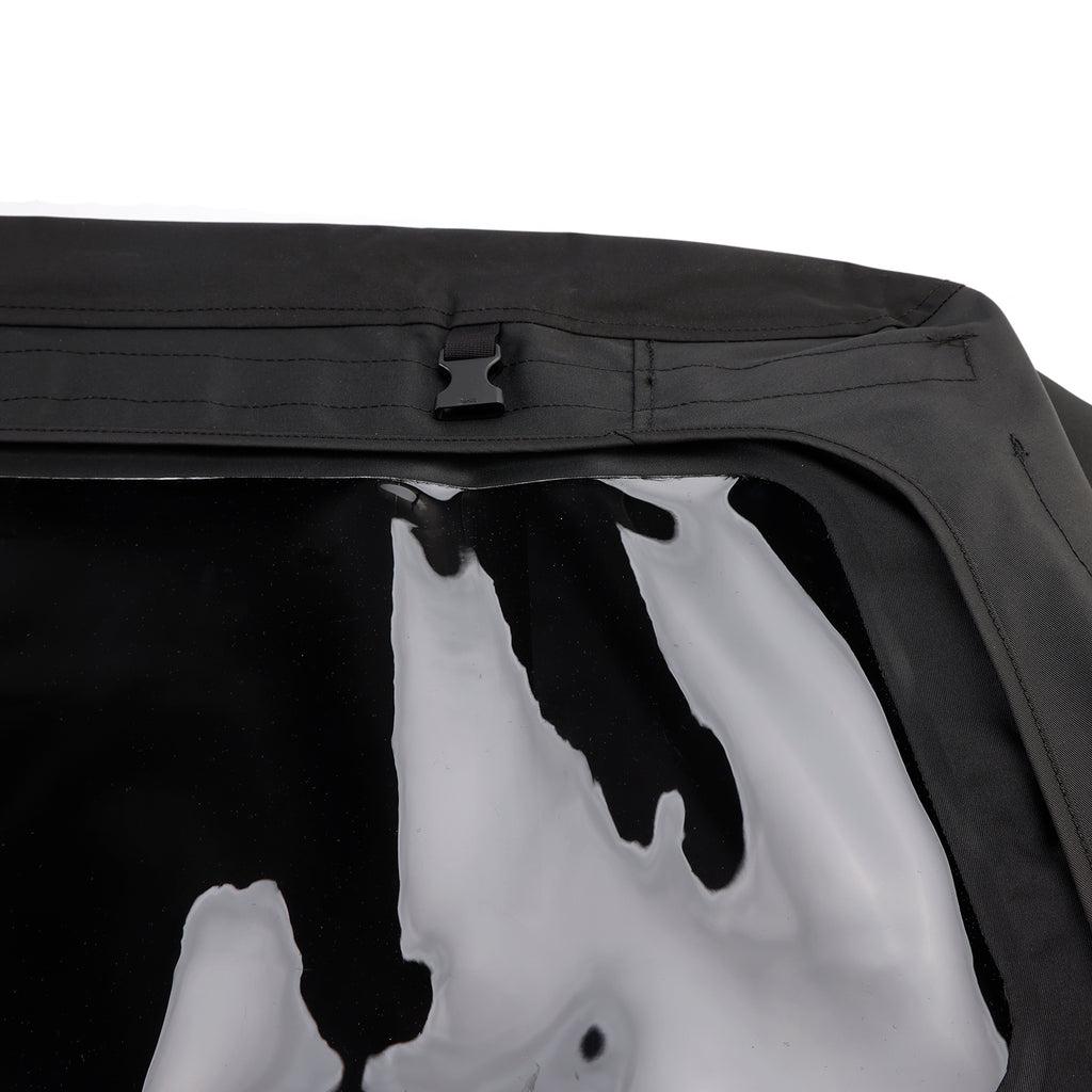 When not in use, the top is stored in the convenient built-in storage system along with the side panels.