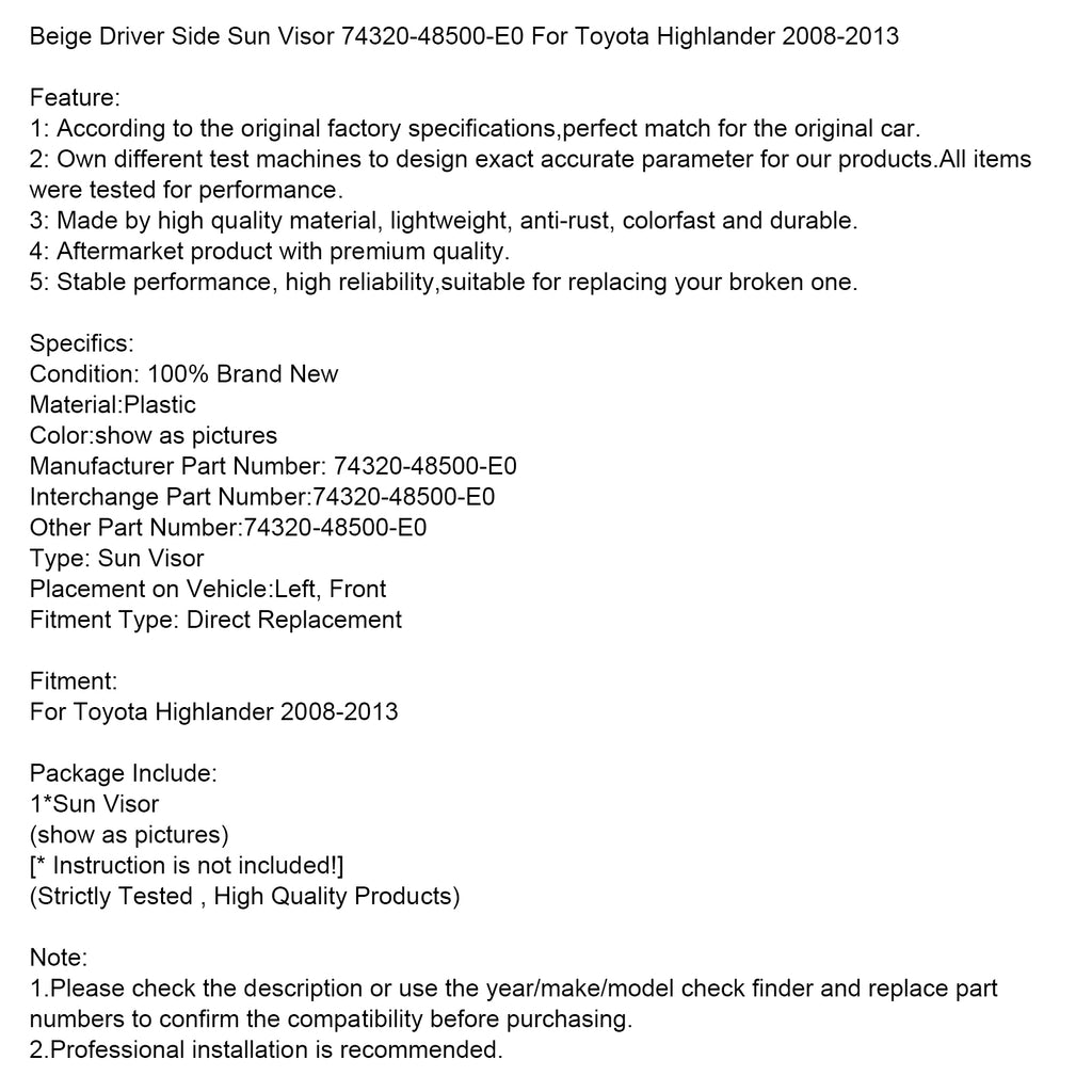 Beige Left Side Sun Visor 74320-48500-E0 For Toyota Highlander 2008-2013