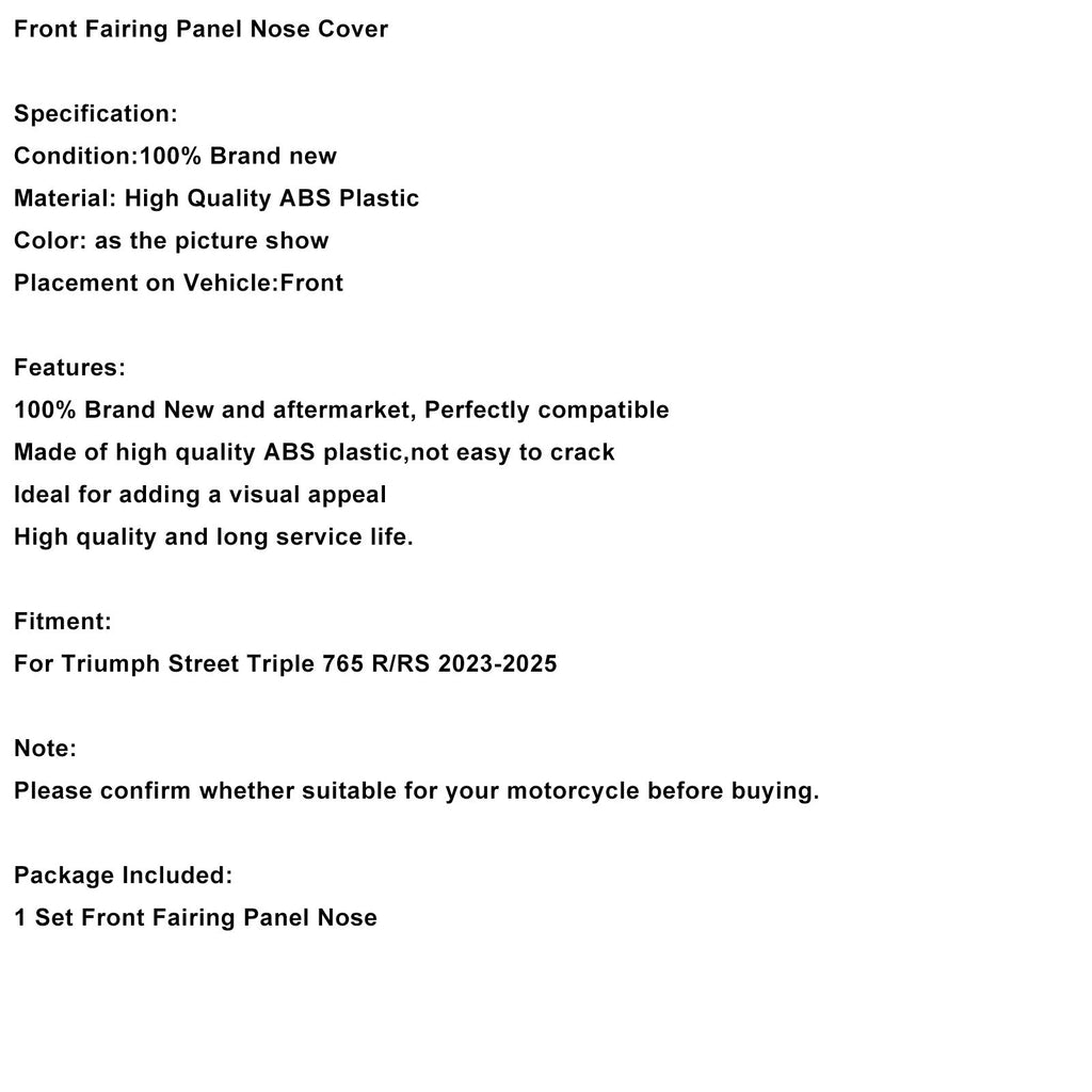 Front Fairing Panel Nose Cover Fit For Street Triple 765 R/RS 2023-2025