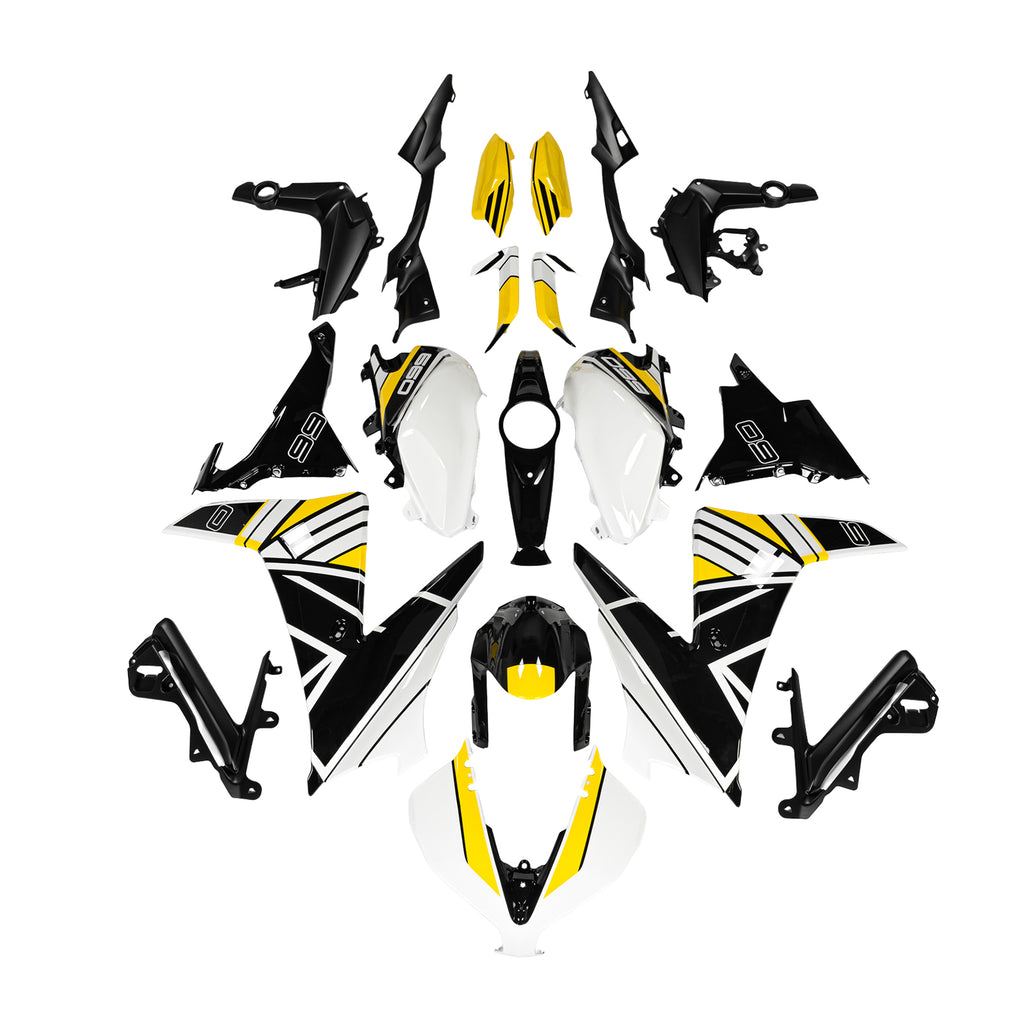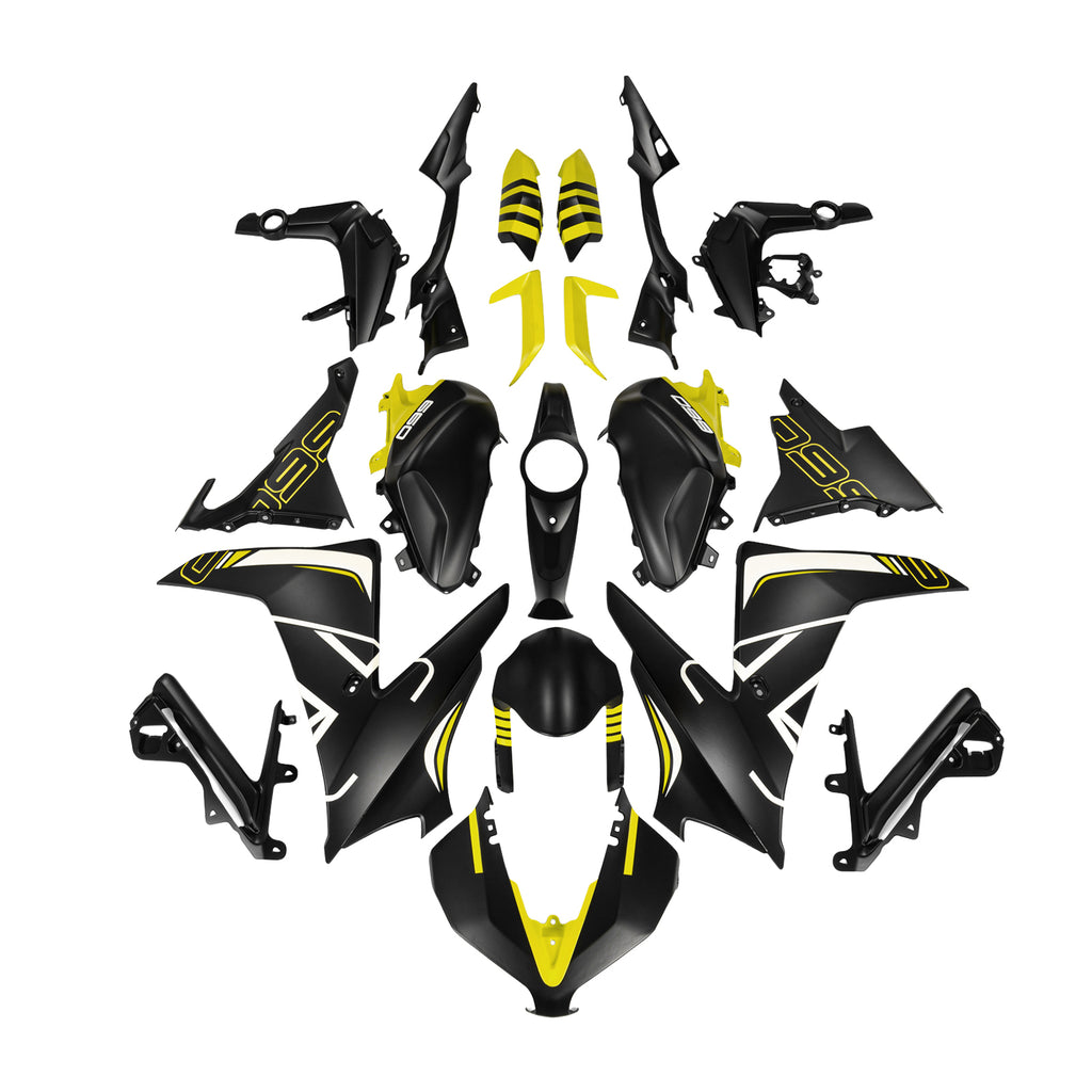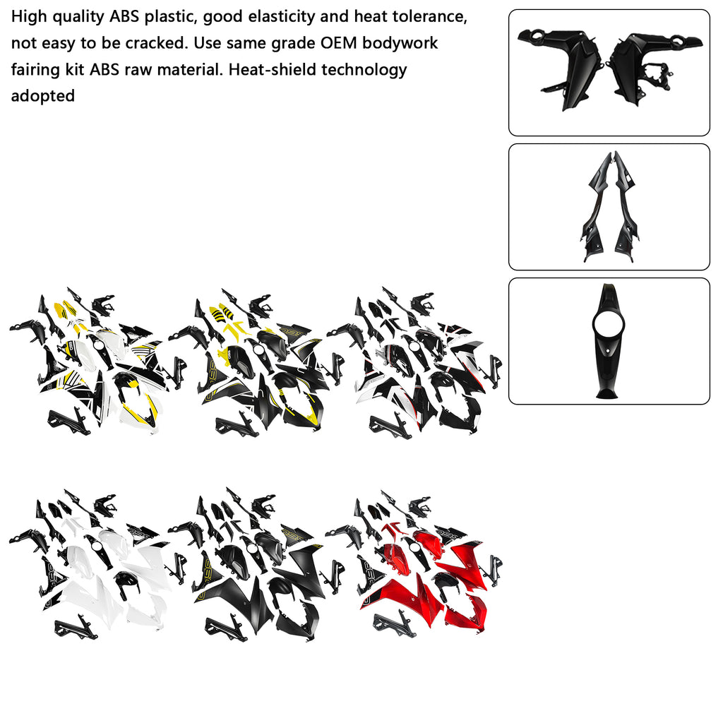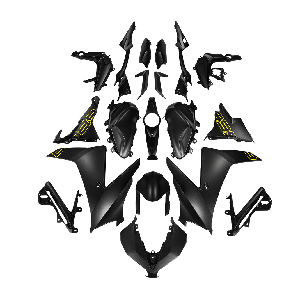 Material: High quality ABS plastic, good elasticity and heat tolerance, not easy to be cracked. Use same grade OEM bodywork fairing kit ABS raw material. Heat-shield technology adopted.
