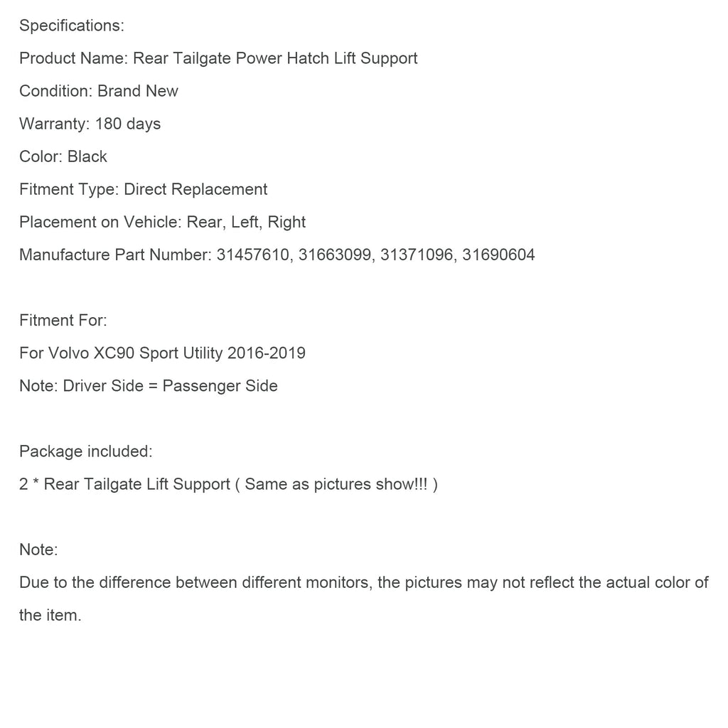 2PCS Rear Tailgate Power Lift Support fit for Volvo XC90 Sport Utility 2016-2019