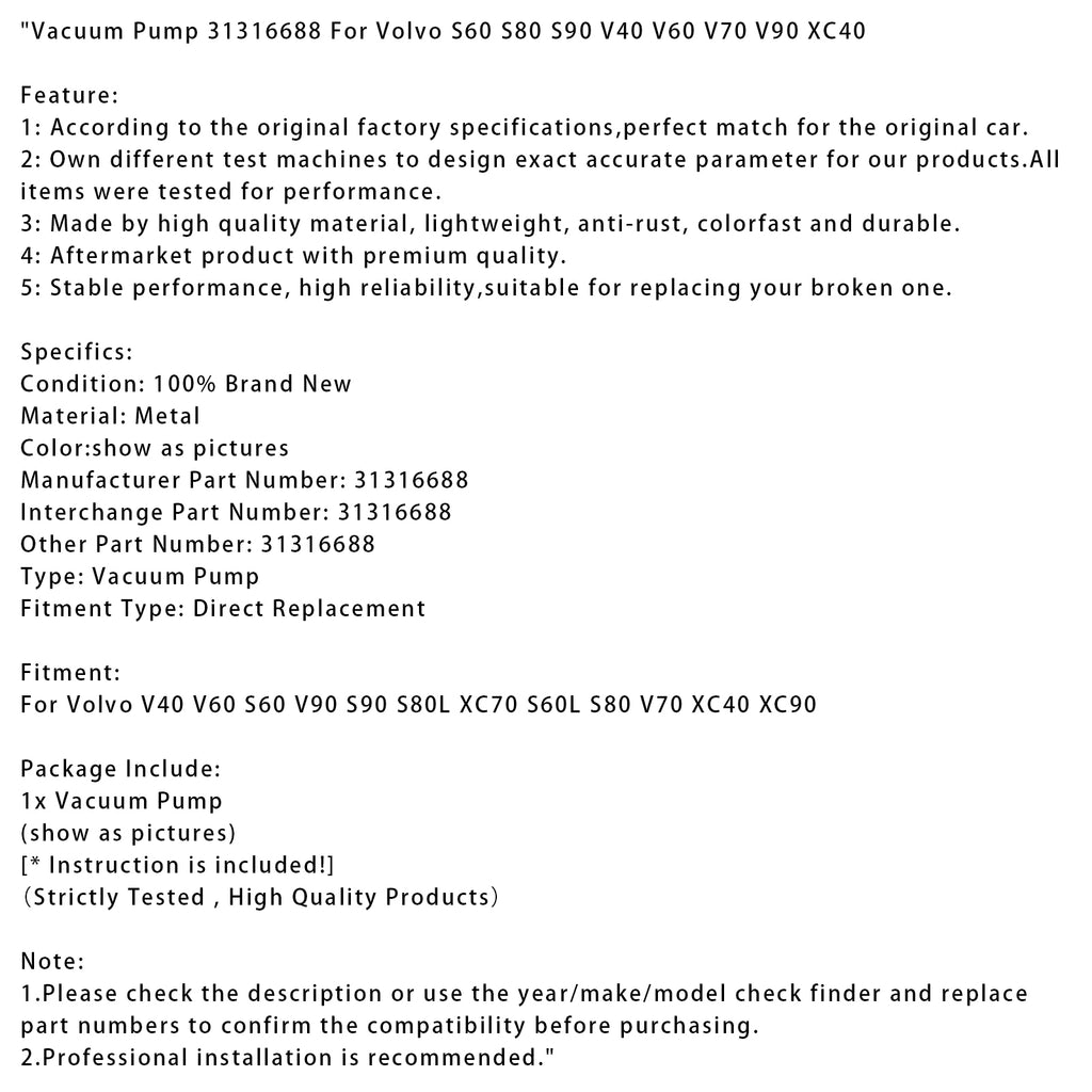 Vacuum Pump 31316688 For Volvo S60 S80 S90 V40 V60 V70 V90 XC40
