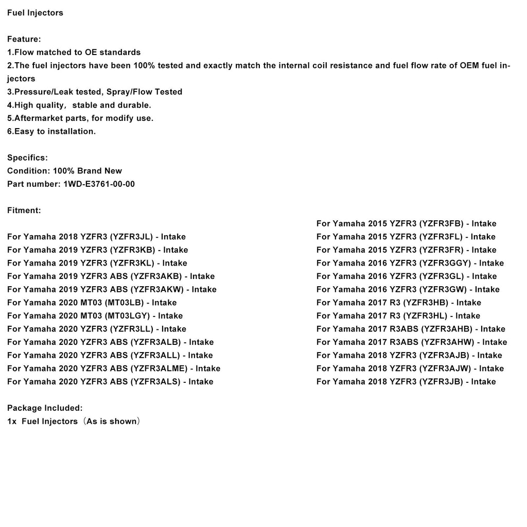 Fuel Injectors Fit For Yamaha YZF-R3 2015-2022