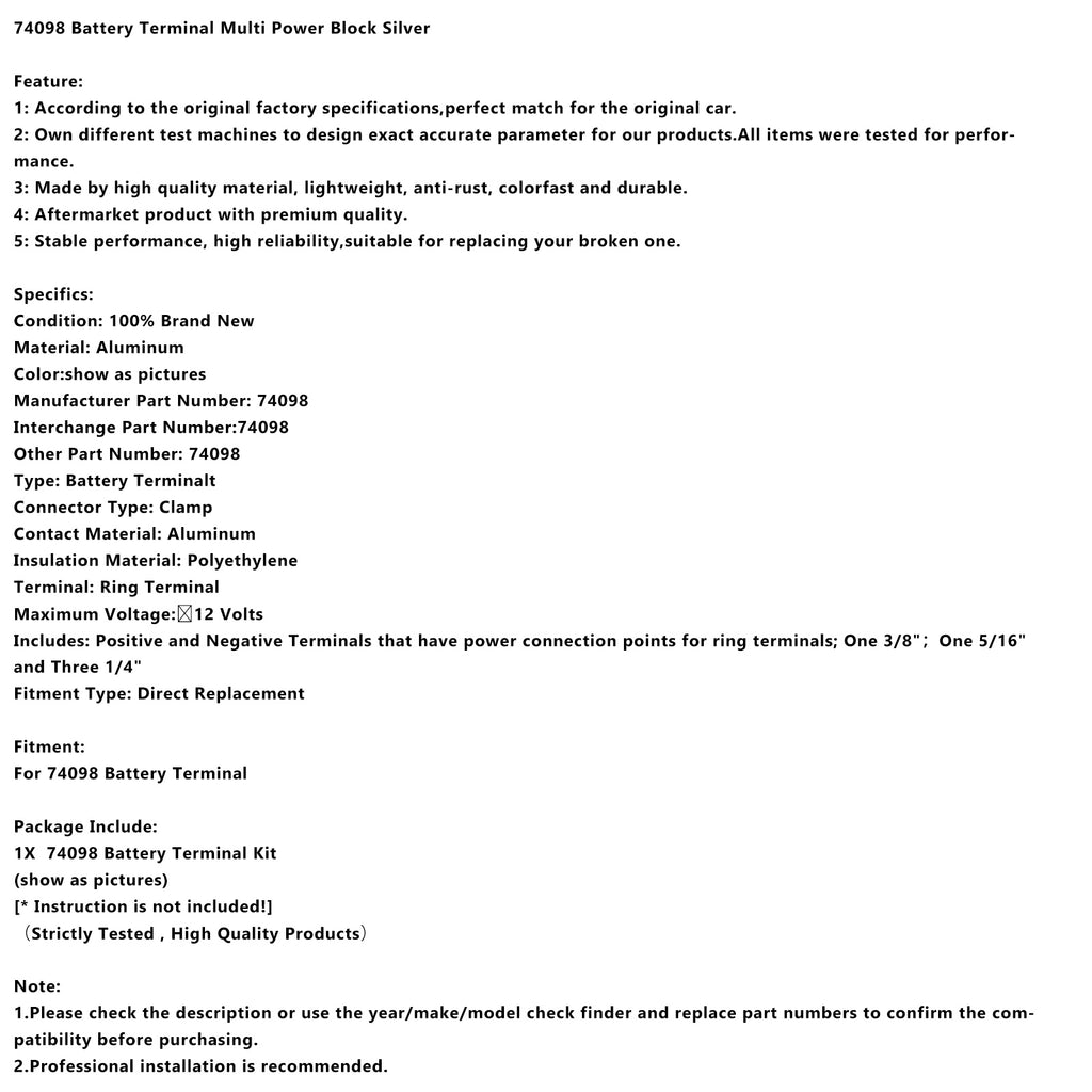 Includes: Positive and Negative Terminals that have power connection points for ring terminals; One 3/8";One 5/16" and Three 1/4"