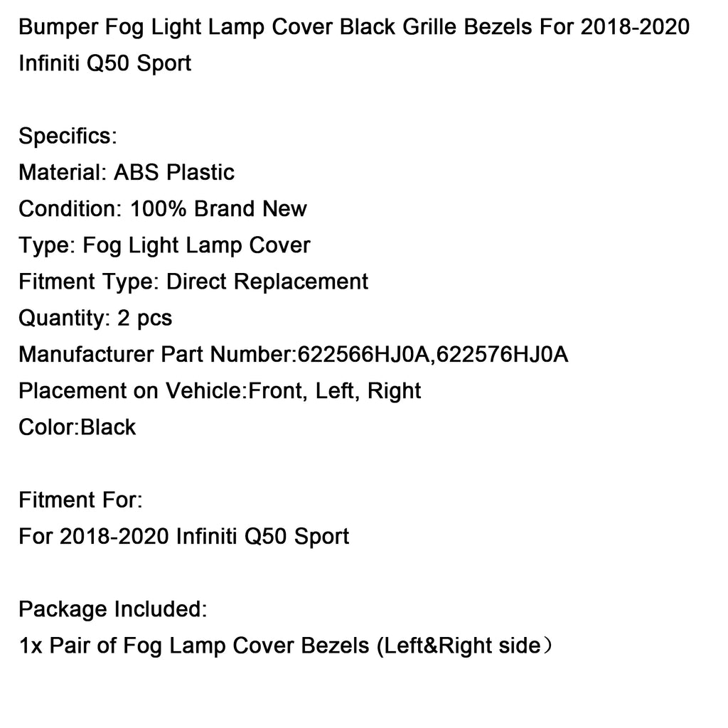 Bumper Fog Light Lamp Cover Black Grille Bezels For 2018-2020 Infiniti Q50 Sport