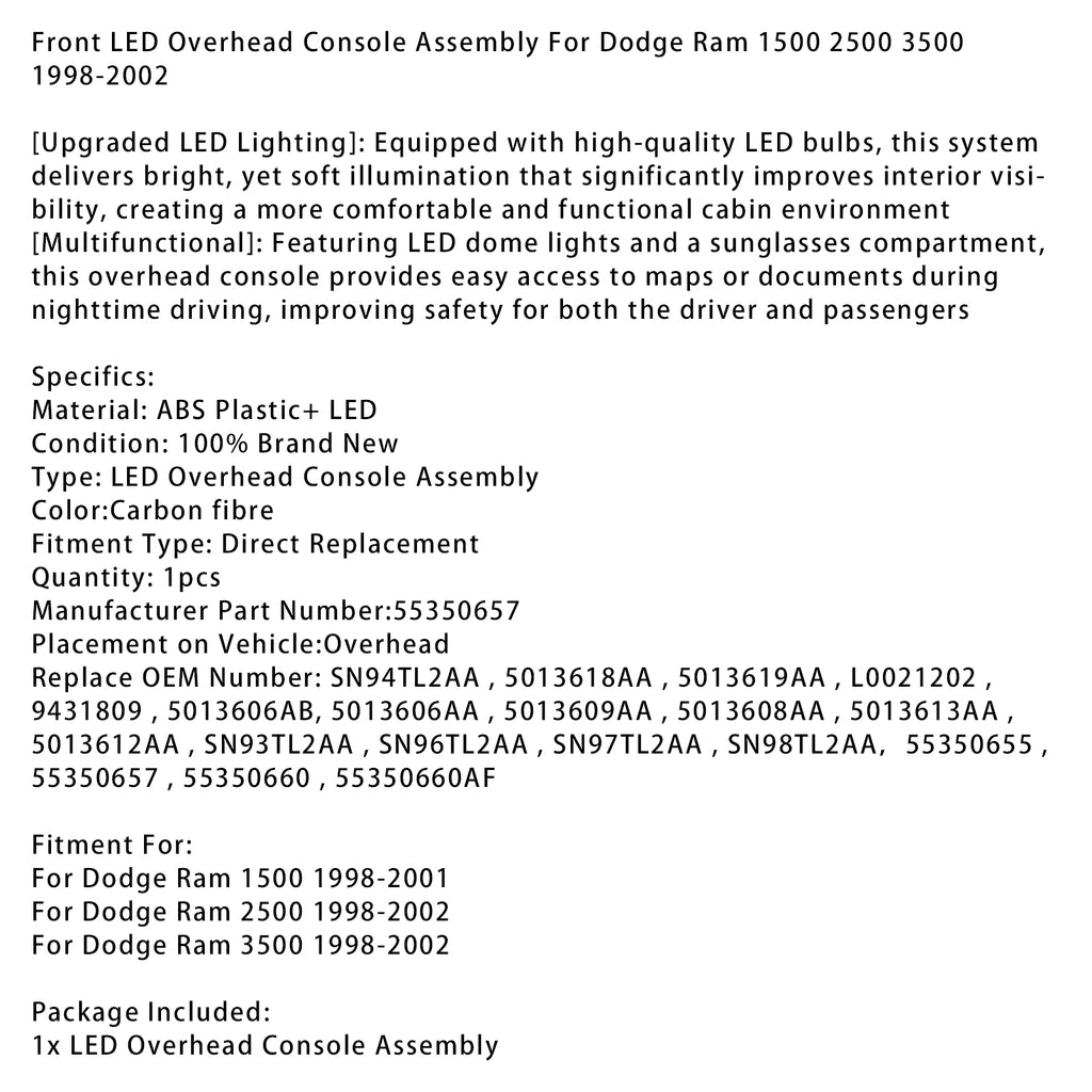 Front LED Overhead Console Carbon For Dodge Ram 1500 2500 3500 1998-2002