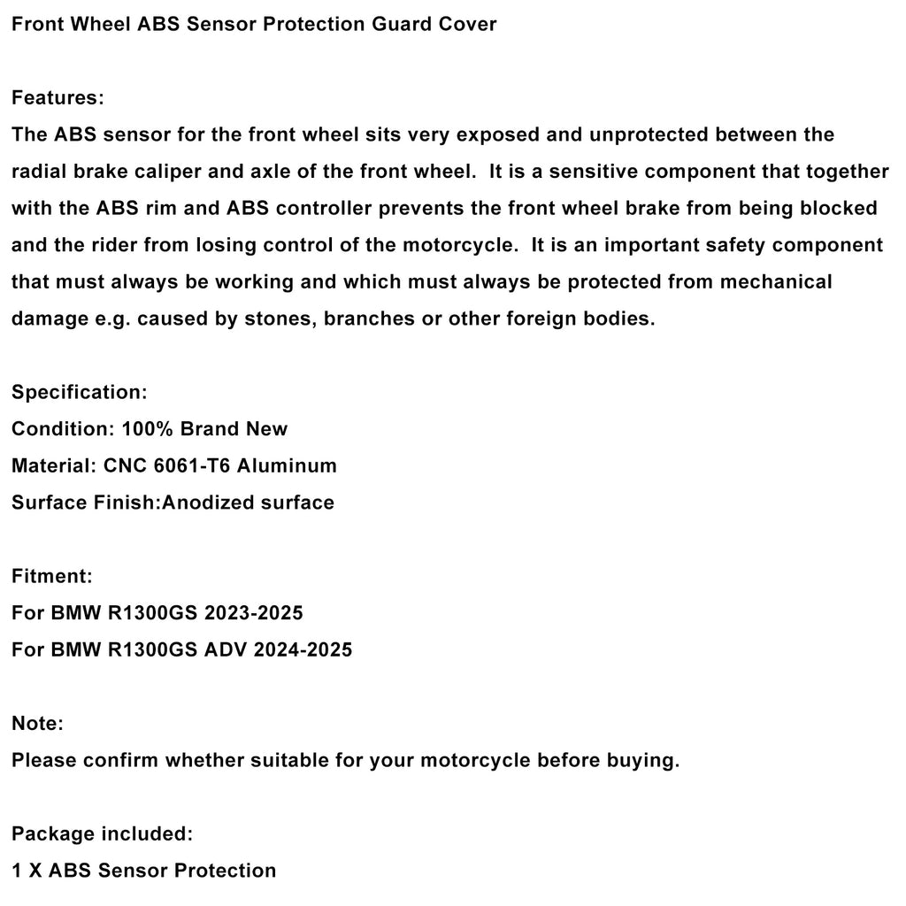 The ABS sensor for the front wheel sits very exposed and unprotected between the radial brake caliper and axle of the front wheel. It is a sensitive component that together with the ABS rim and ABS controller prevents the front wheel brake from being blocked and the rider from losing control of the motorcycle. It is an important safety component that must always be working and which must always be protected from mechanical damage e.g. caused by stones, branches or other foreign bodies.