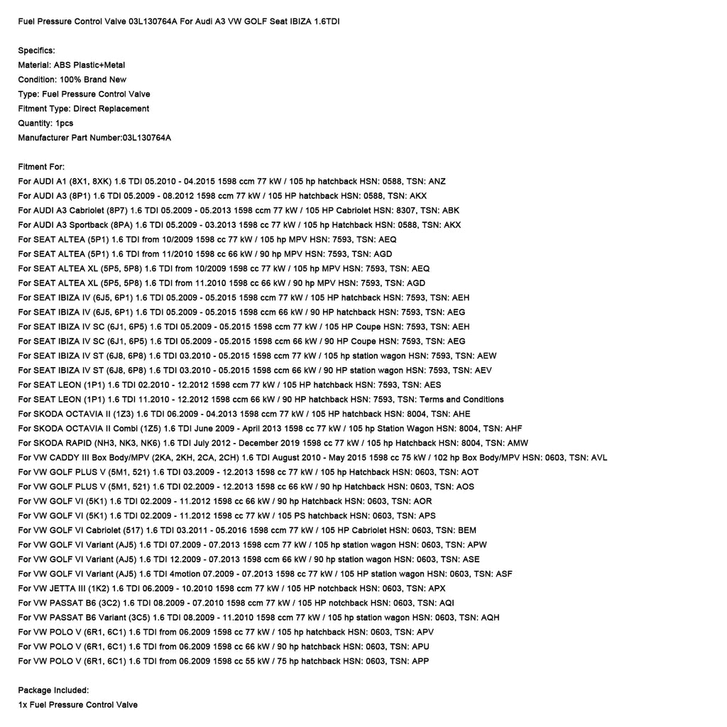 Fuel Pressure Control Valve 03L130764A For Audi A3 VW GOLF Seat IBIZA 1.6TDI