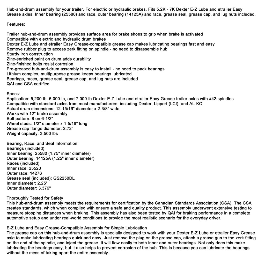 The trailer hub drum kit with 12"x2" electric brakes is a reliable and essential upgrade for my trailer. Installation was straightforward, and the fitment was perfect for my axle. The kit includes everything needed for a complete and hassle-free installation. The electric brakes provide excellent stopping power, ensuring enhanced safety while towing. The build quality of the hub drum kit is impressive, guaranteeing durability and long-lasting performance. If you're in need of a dependable trailer upgrade, this hub drum kit with electric brakes is a reliable choice that won't disappoint.