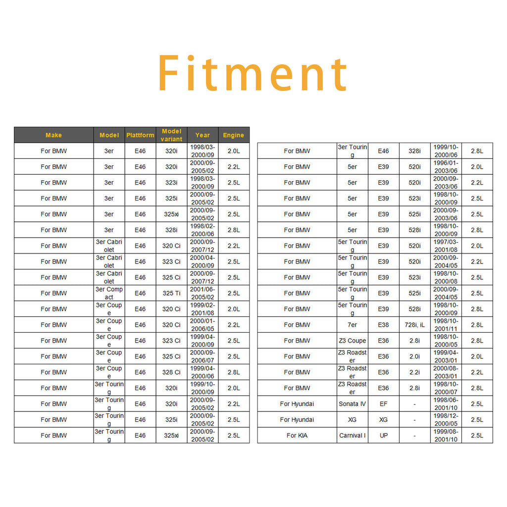 Fit For Hyundai Sonata MK III Saloon 2.5 V6 24V 2493ccm 160HP 118KW (Petrol) 1998-2004