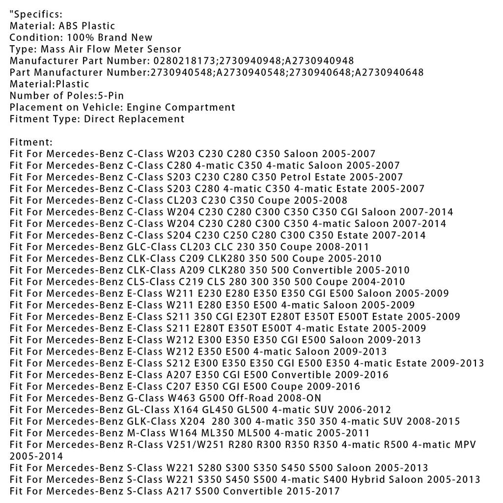 Mass Air Flow Meter Sensor For Mercedes-Benz E350 C280 C350 ML350 0280218173